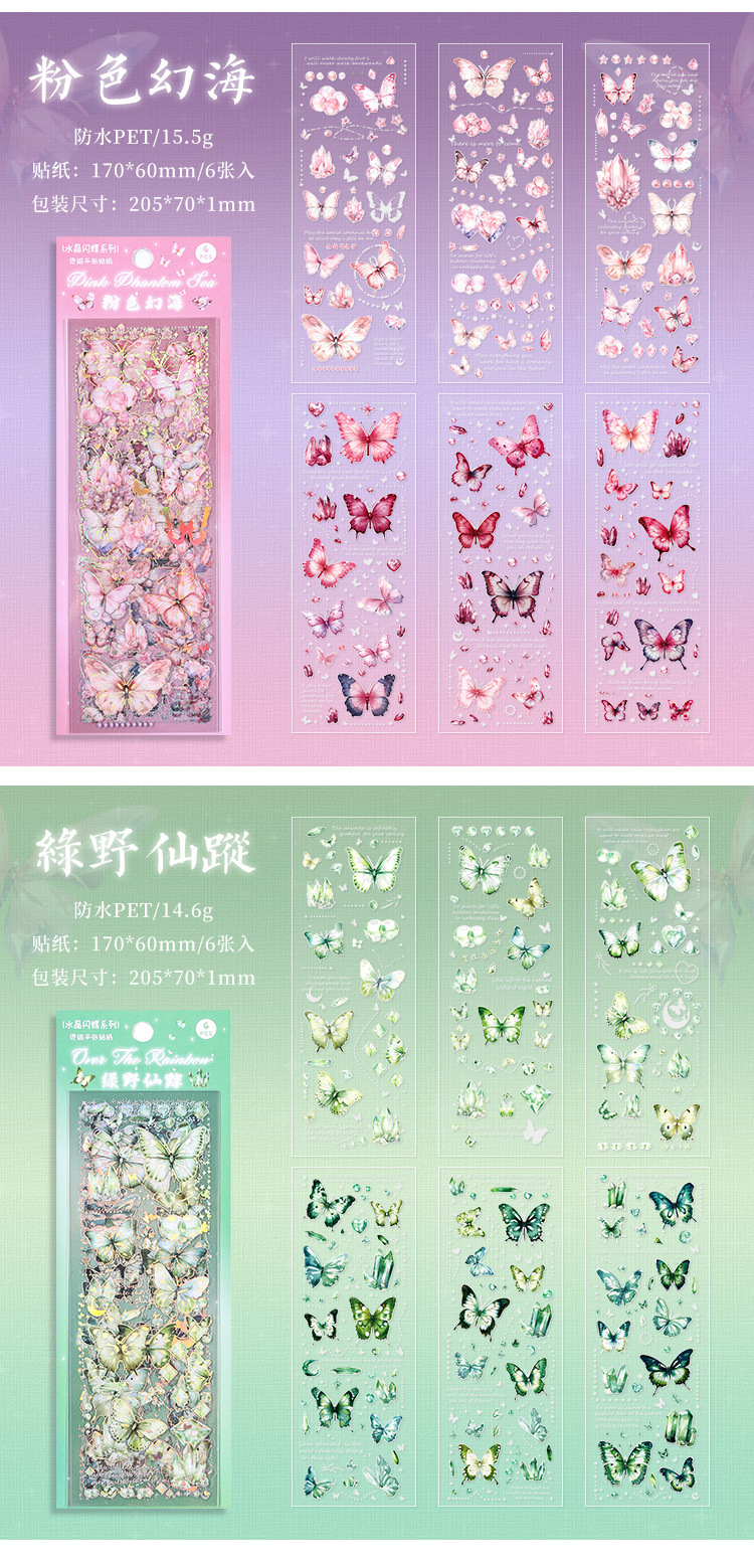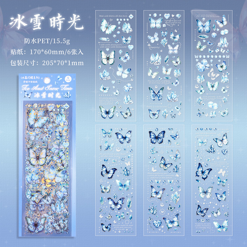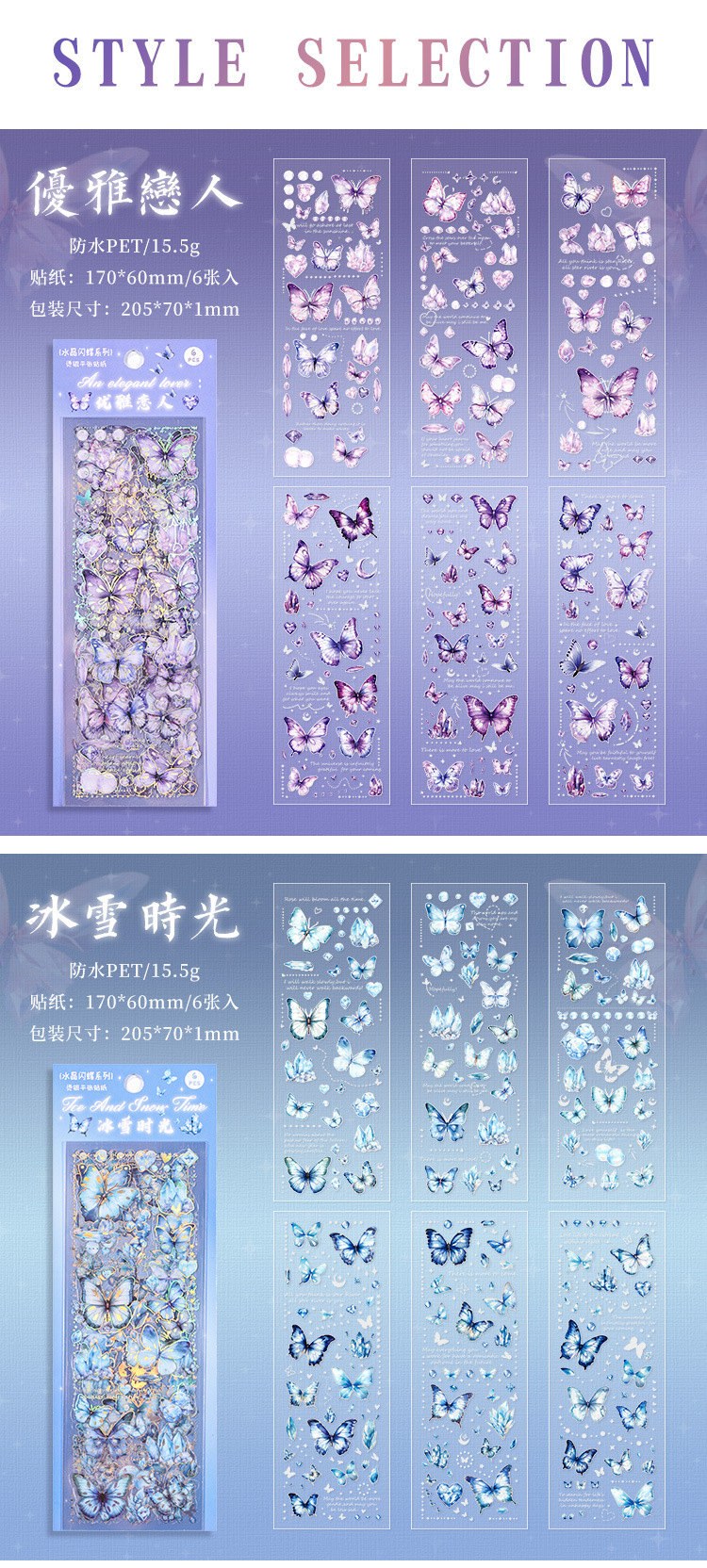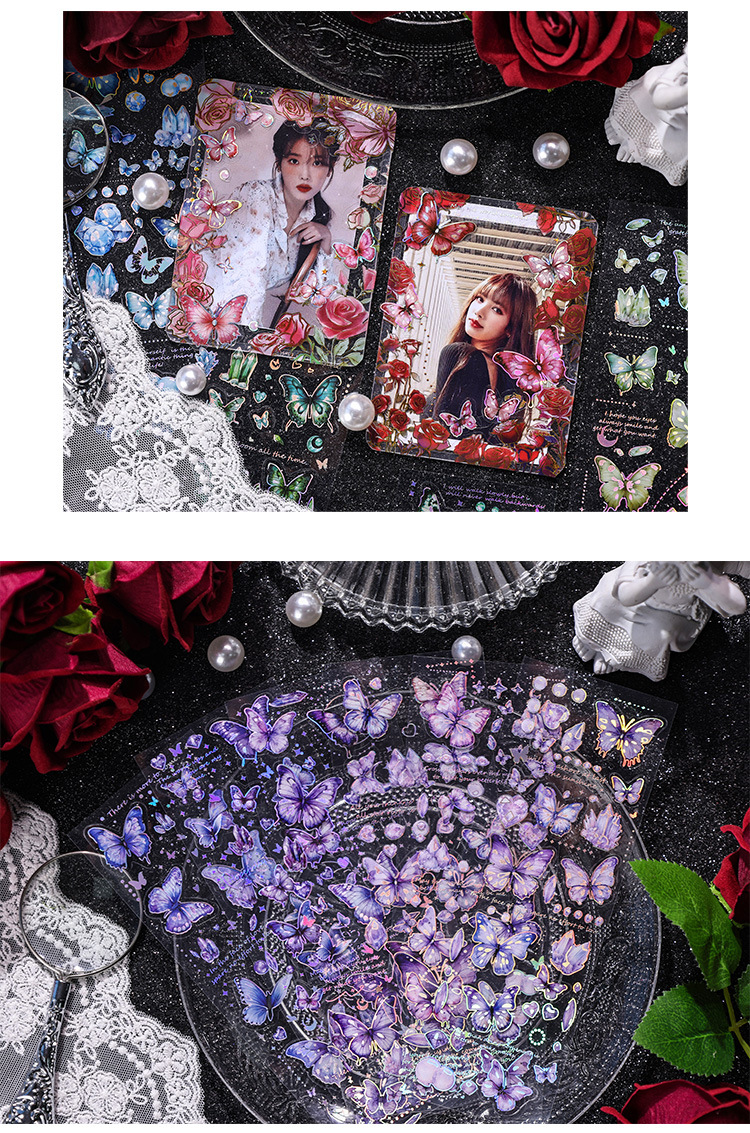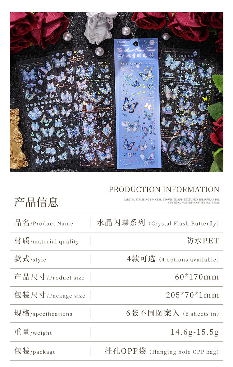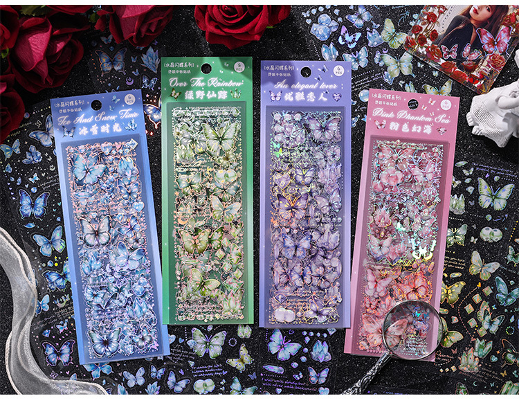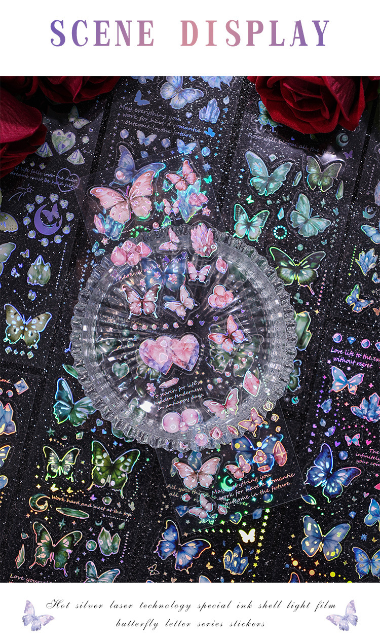 크리스탈 빛나는 나비 레이저 방수 애완 동물 손 계정 스티커 팩 diy Goo 카드 손 계정 소재 종이를위한 Yuezhen 국경 특별스토어 가기