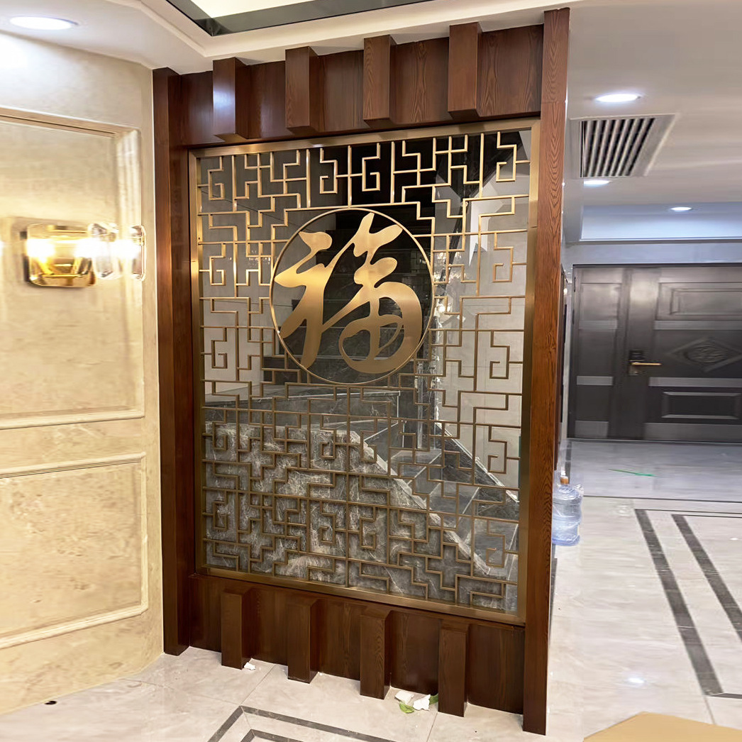 중국 스타일의 스테인레스 스틸 스크린 파티션 현대 홈 쉼터 입구 복도 푸지 그릴 금속 빈 패턴 장식