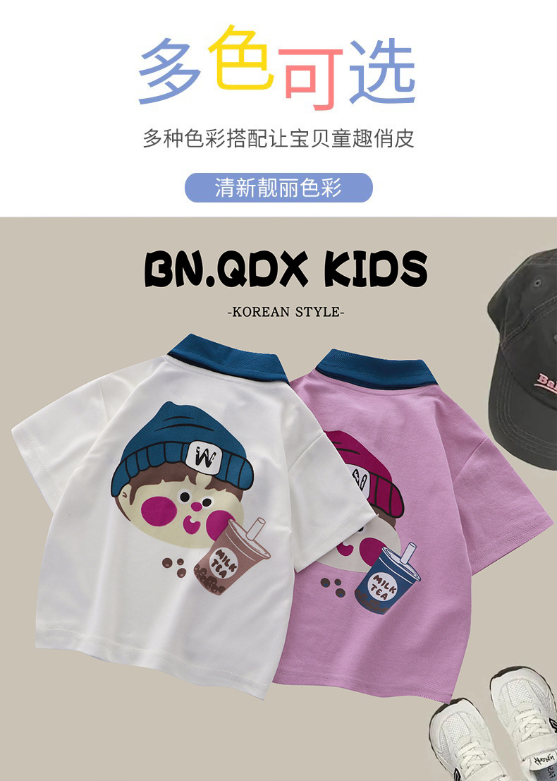 아동용 반팔 티셔츠 여름 옷깃 폴로 셔츠 소년 소녀용 세련된 만화 여름상의 반팔 아동복스토어 가기