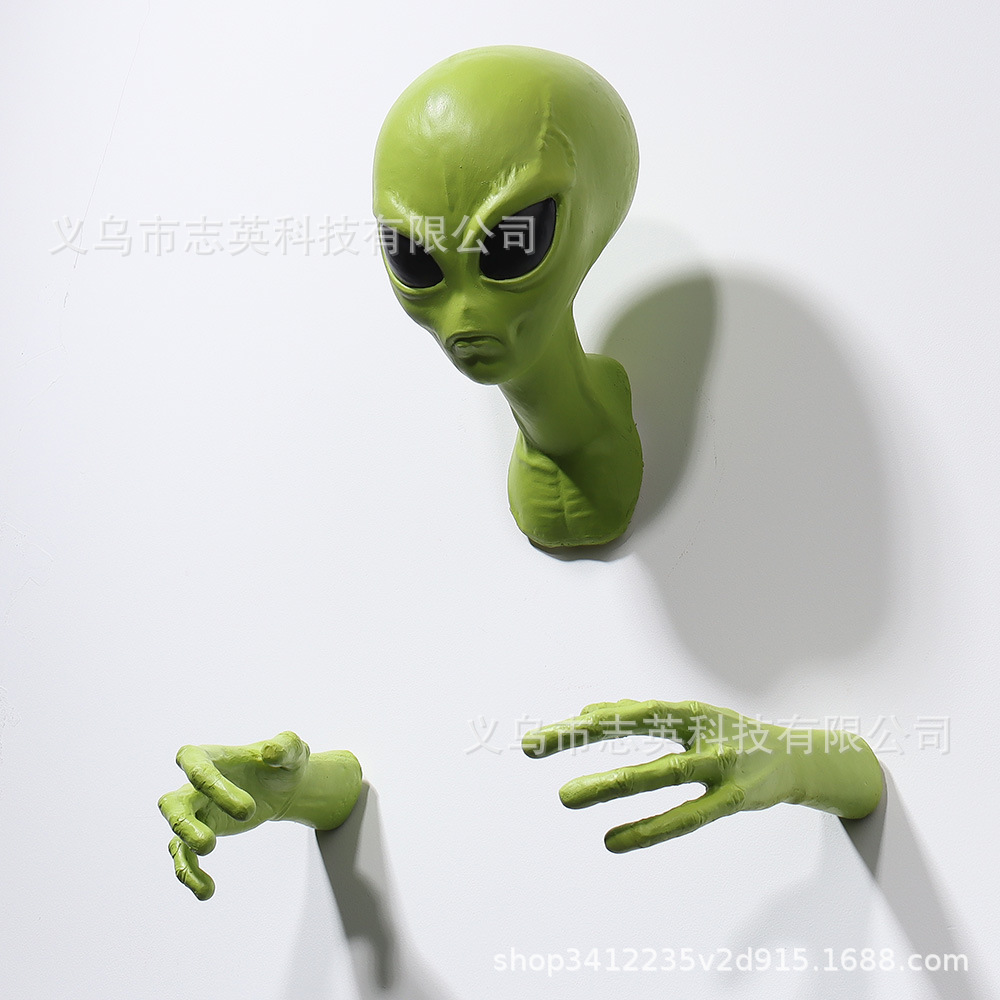 국경 새로운 녹색 외계인 창조적 인 장식품 3D 외계인 벽 예술 재미 홈 펜던트 장식스토어 가기