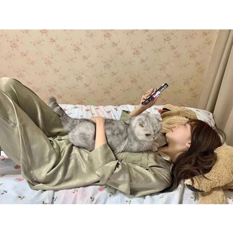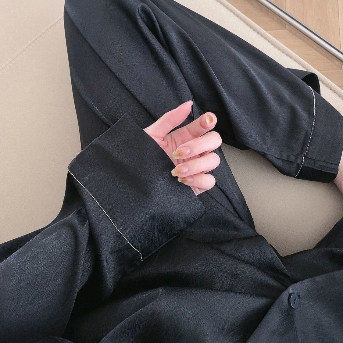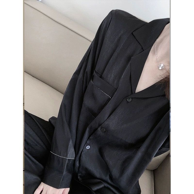 고급 아이스 실크 잠옷 여성 여름 얇은 홈 의류 2024 새로운 프랑스 기질 긴팔 바지 세트스토어 가기