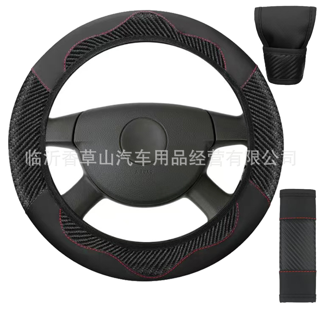 국경 간 대외 무역 자동차 스티어링 휠 커버 핸드 브레이크 커버 기어 커버 탄소 섬유 가죽 스포츠 스티칭 핸들 세트 3 개