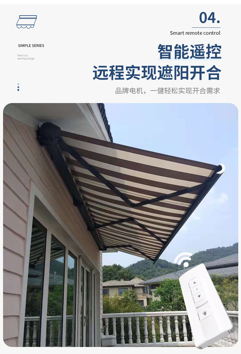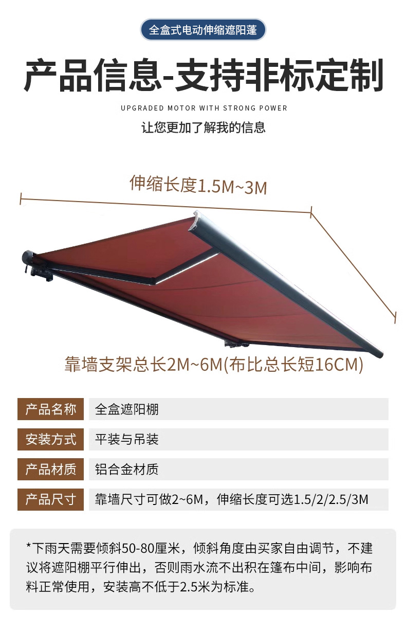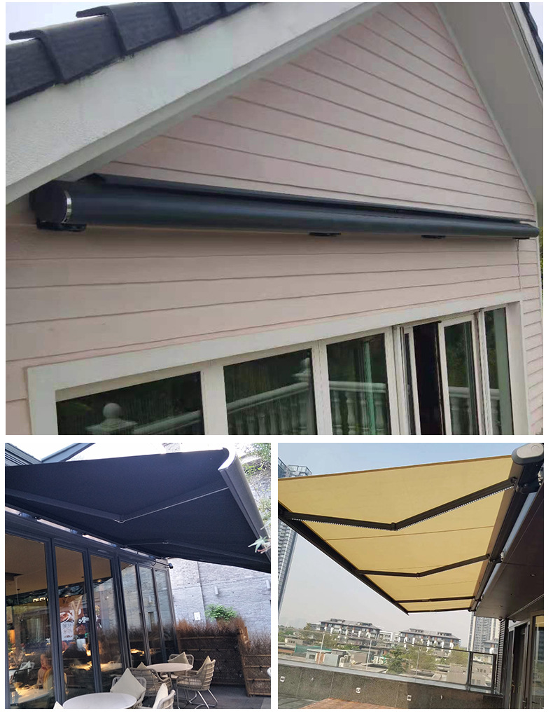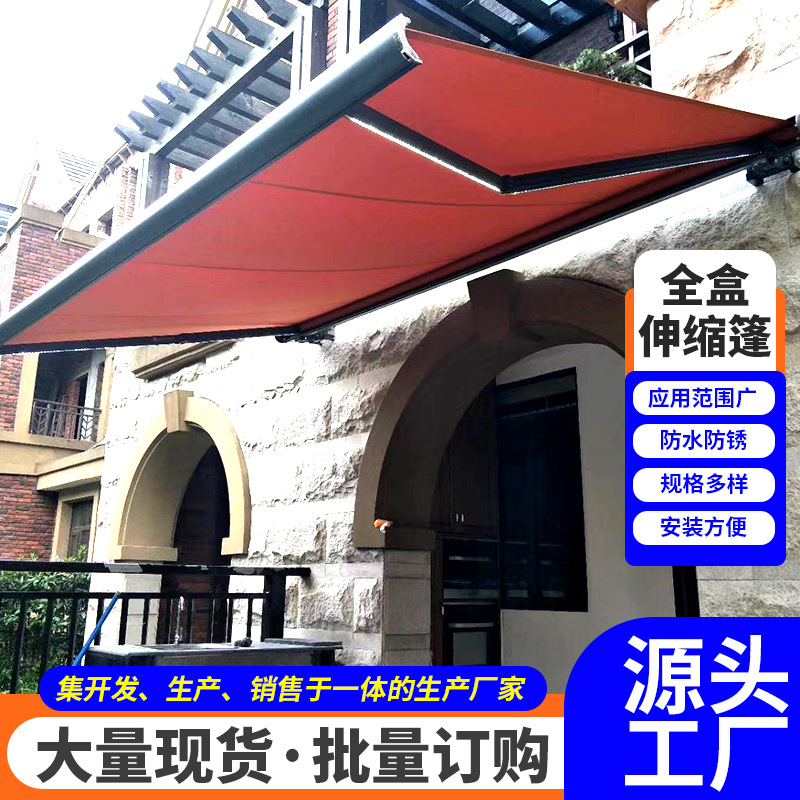 맞춤형 전기 개폐식 천막, 전체 상자 접이식 자동 차양, 안뜰 발코니 빌라, 방수 및 자외선 차단