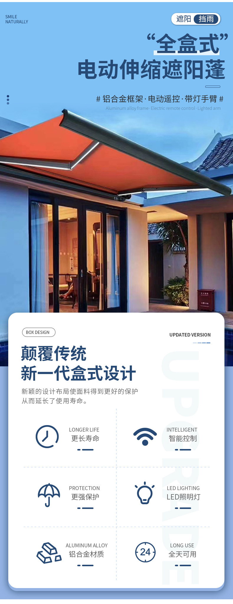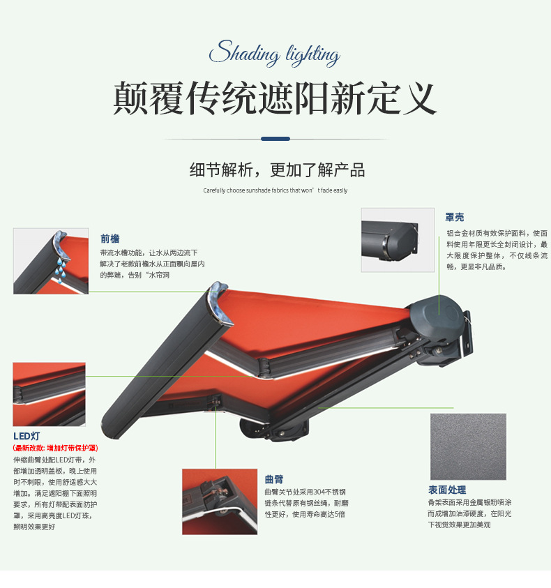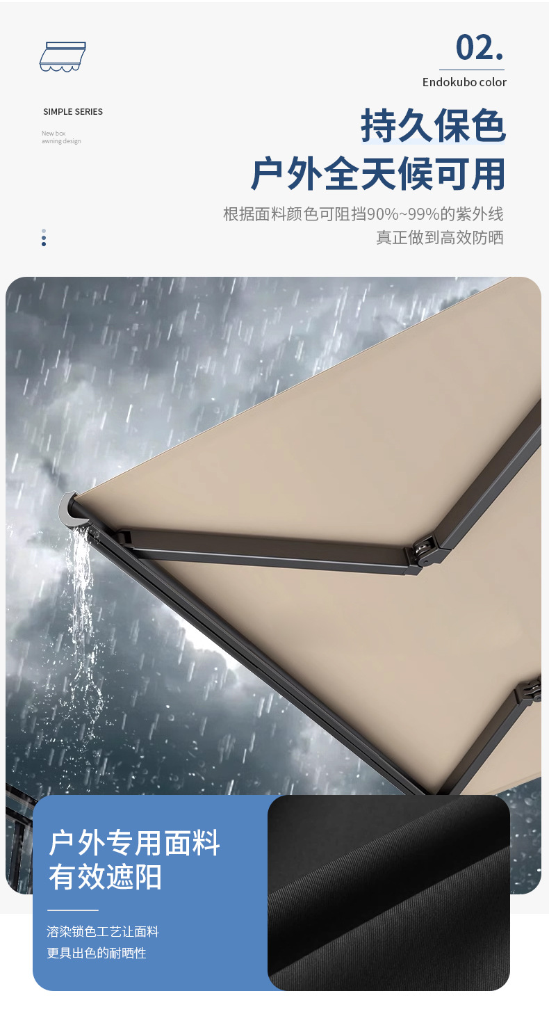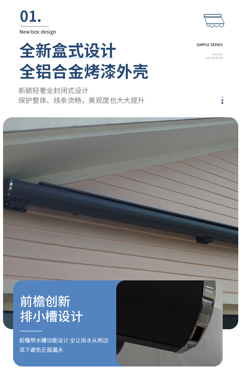 맞춤형 전기 개폐식 천막, 전체 상자 접이식 자동 차양, 안뜰 발코니 빌라, 방수 및 자외선 차단