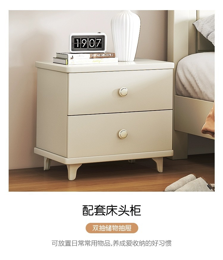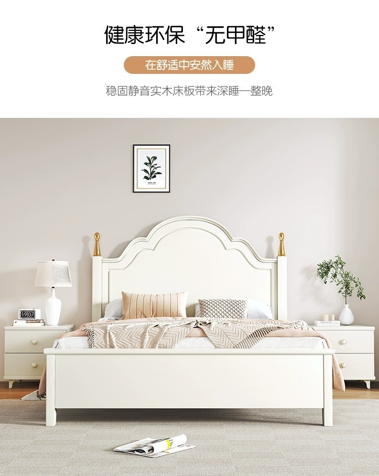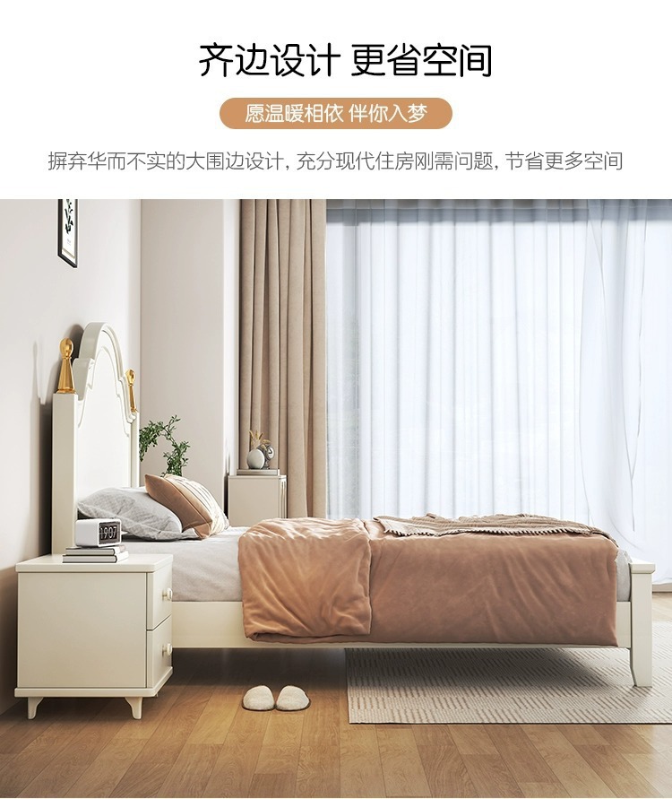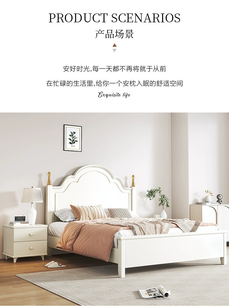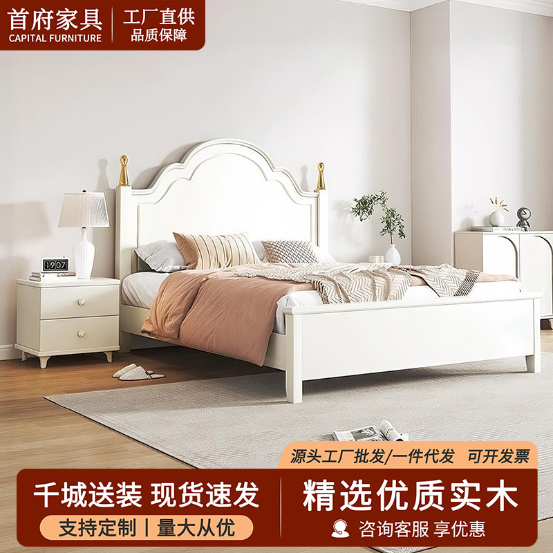 크림 스타일 목가적 인 스타일 현대 간단한 전체 단단한 나무 침대 작은 아파트 1.8m 북유럽 흰색 공주 더블 침대 마스터 침실스토어 가기