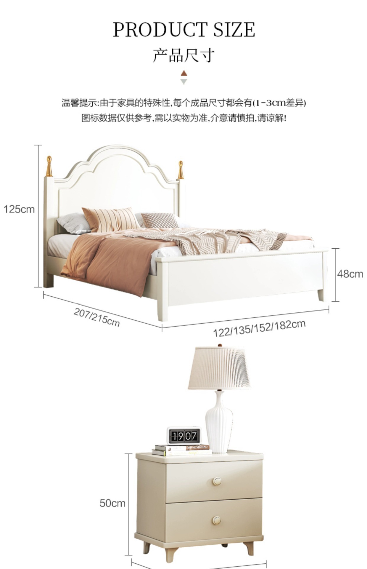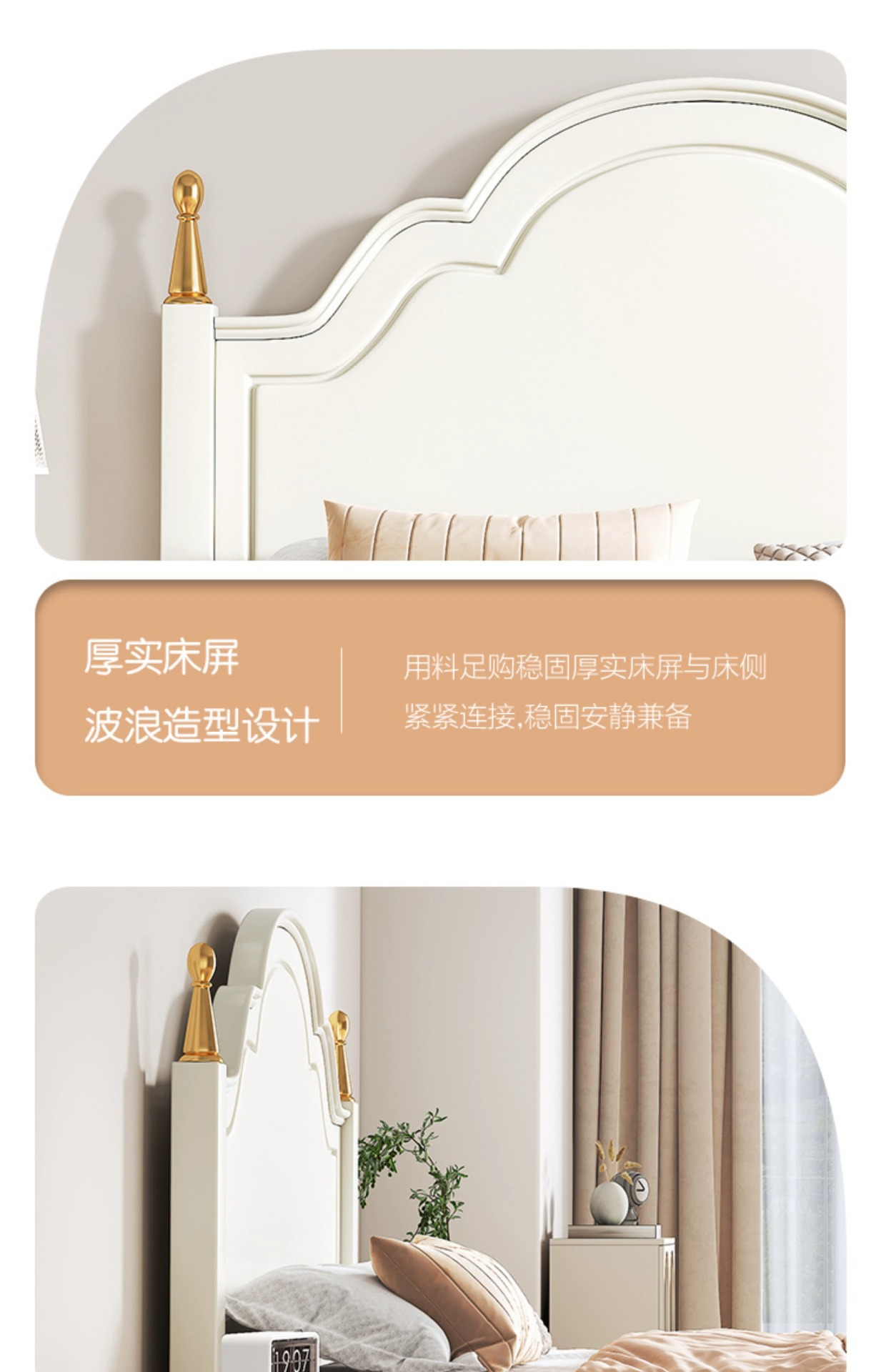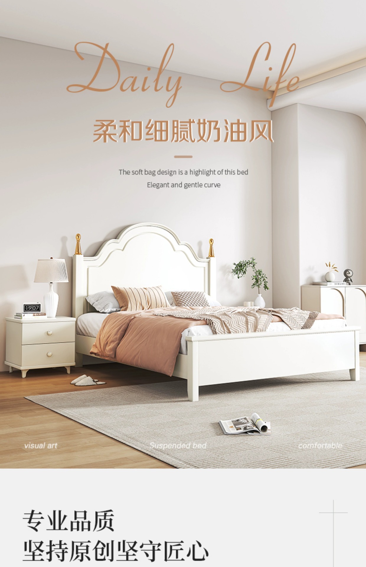 크림 스타일 목가적 인 스타일 현대 간단한 전체 단단한 나무 침대 작은 아파트 1.8m 북유럽 흰색 공주 더블 침대 마스터 침실스토어 가기