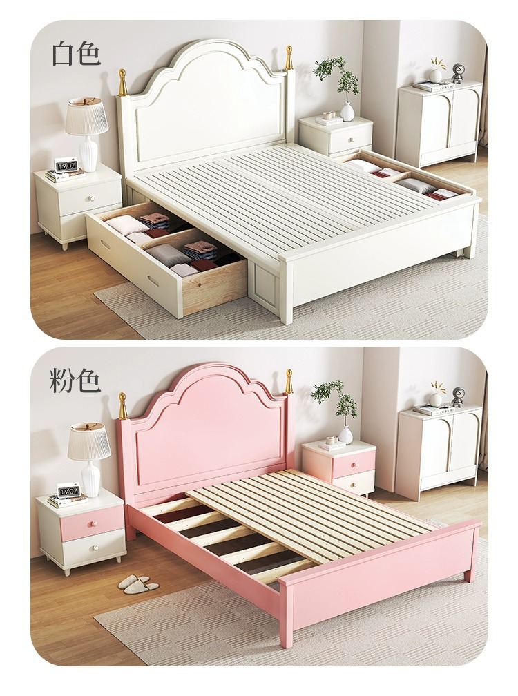 크림 스타일 목가적 인 스타일 현대 간단한 전체 단단한 나무 침대 작은 아파트 1.8m 북유럽 흰색 공주 더블 침대 마스터 침실