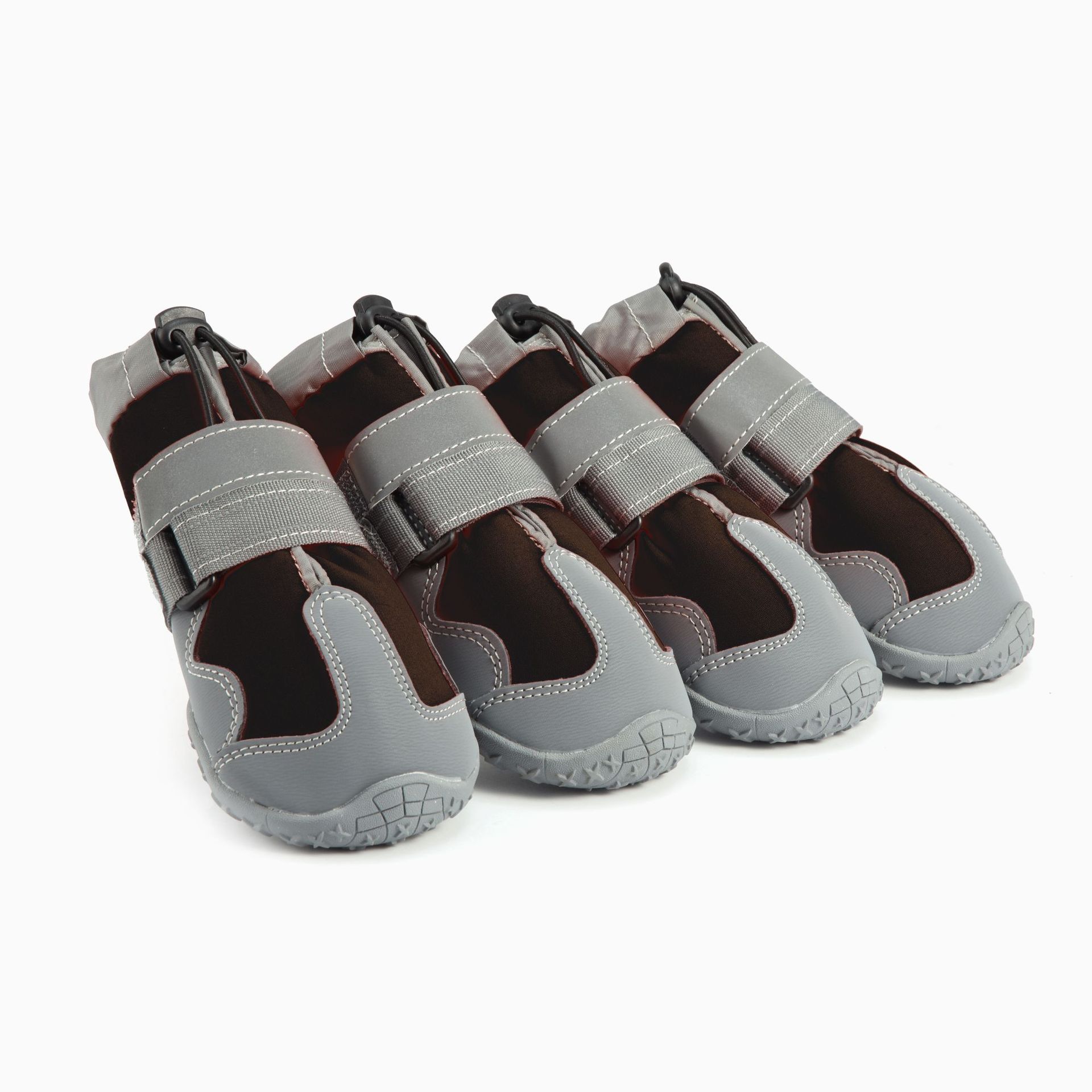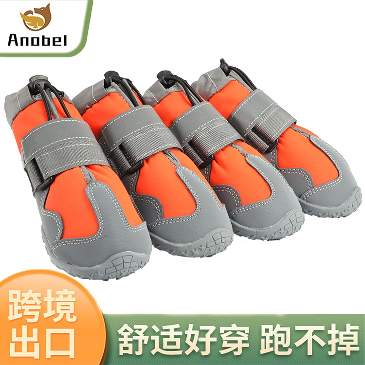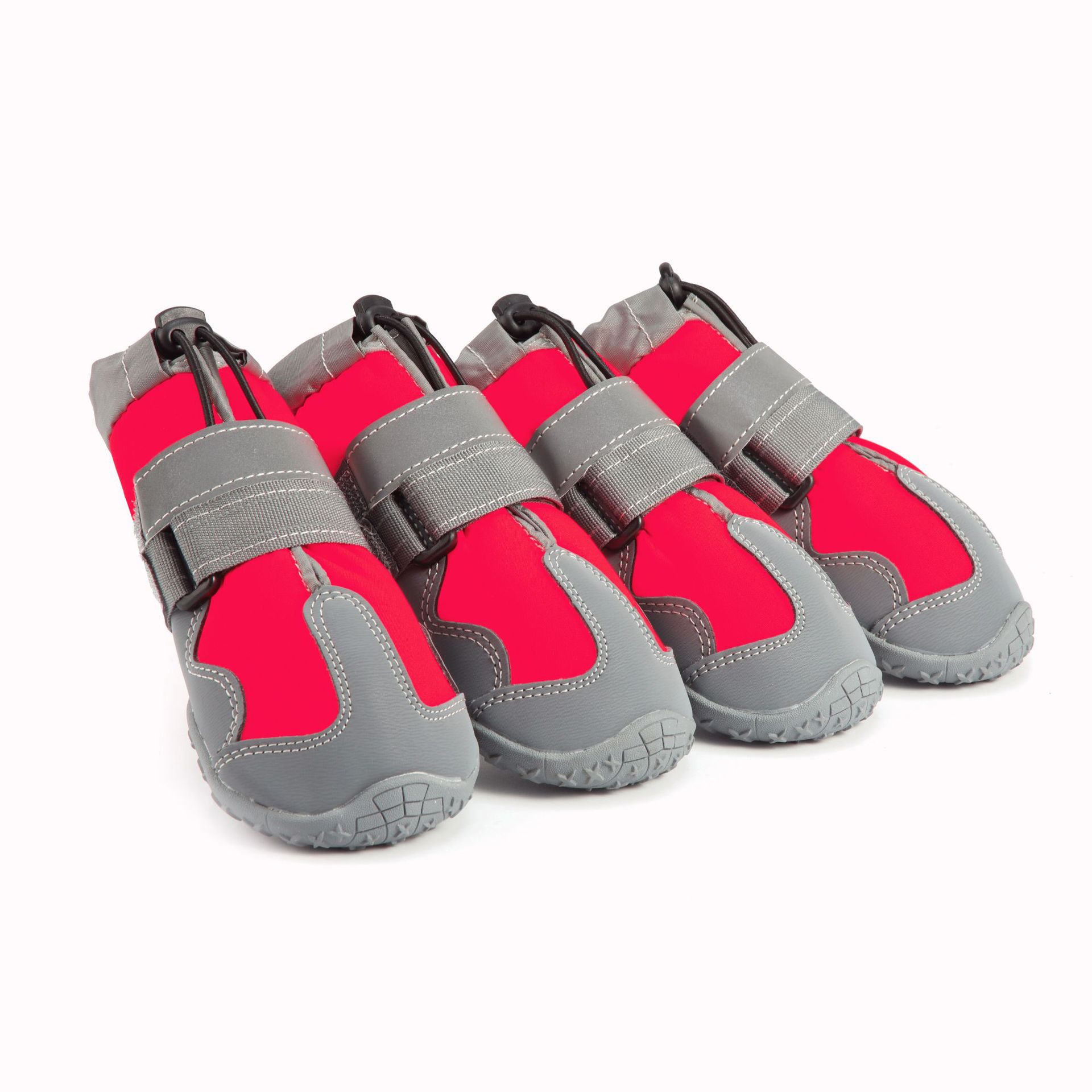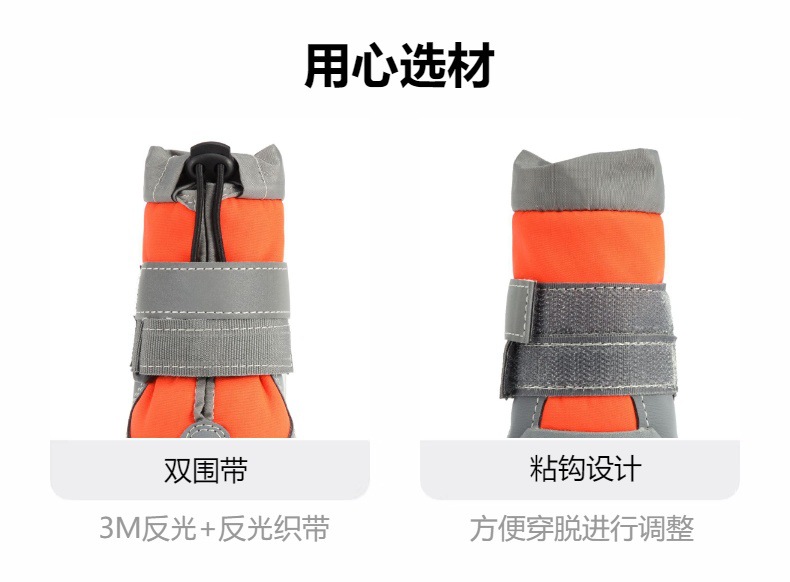 【本品特点】:本款鞋采用四面弹防泼水面料,透气,回弹效果好,外加反光条设计,狗狗脚穿柔软,舒服,具有比水分子密度小、比水蒸气密度大的功能,防闷、防臭、防泼水防雪的效果,橡胶耐磨防滑鞋底,狗狗穿着可以在雪地、冰川、丛林安全行走,是一双适合户外行动的宠物鞋!