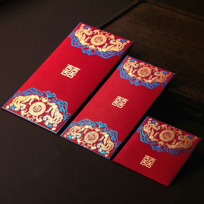 새로운 금박을 입힌 결혼식 빨간 봉투 가방 행복한 단어 열린 문은 창조적 인 성격 큰 작은 단단한 종이 큰 만 위안입니다스토어 가기