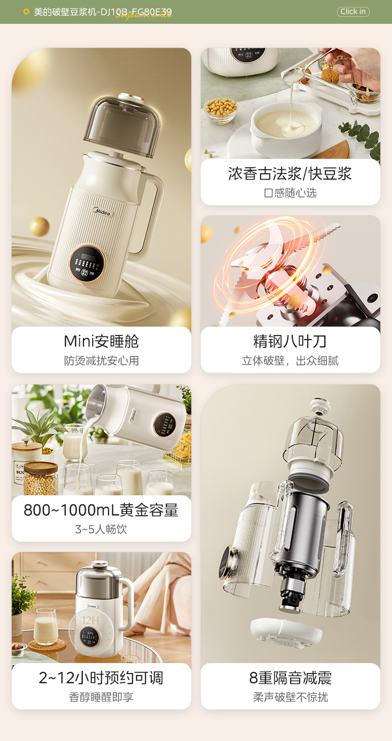 Midea 벽 깨는 기계 대두유 가구 1 사람 작은 다기능 자동적인 새로운 대두유 기계 DJ10B-FG80E39스토어 가기