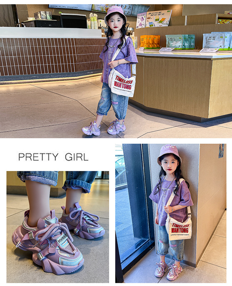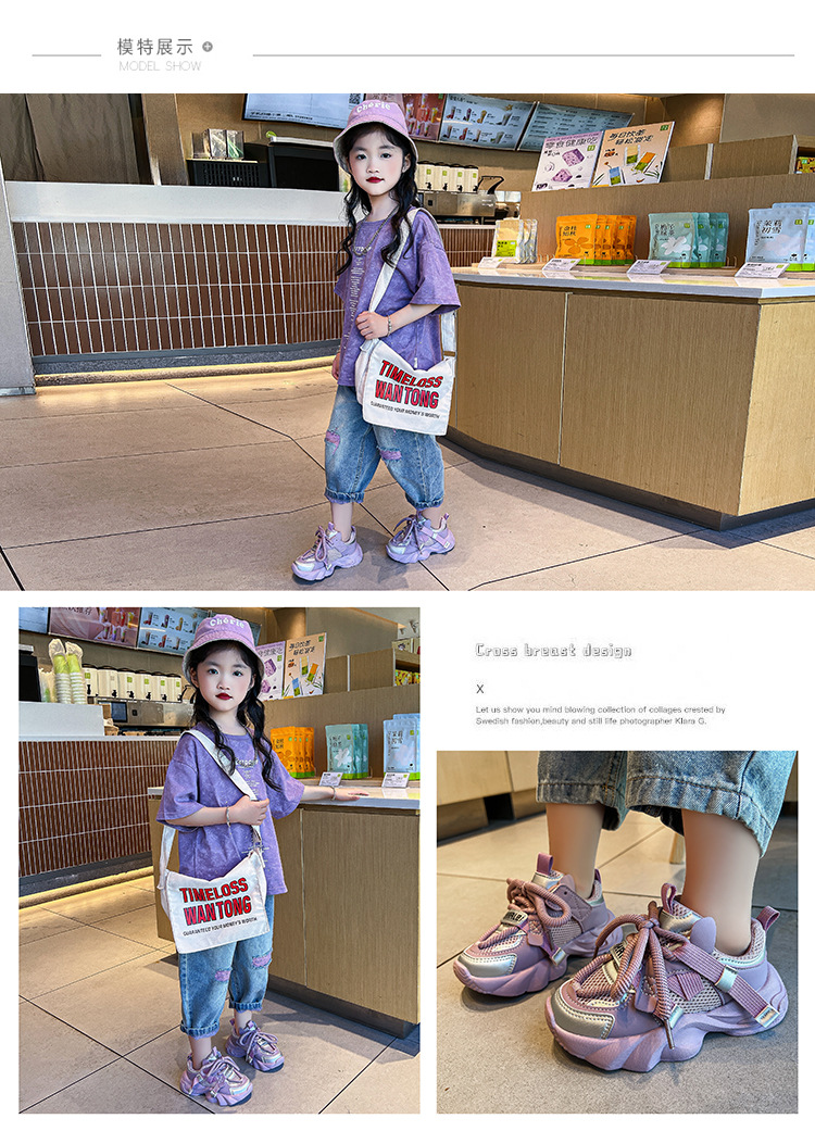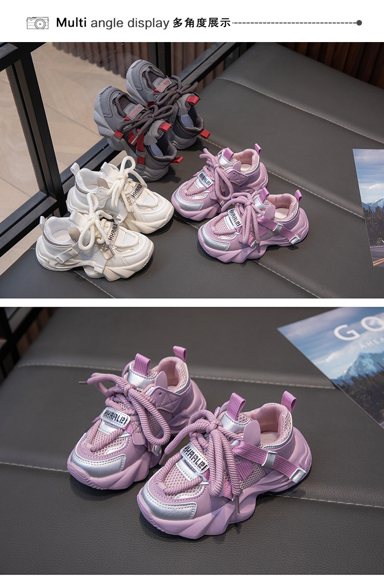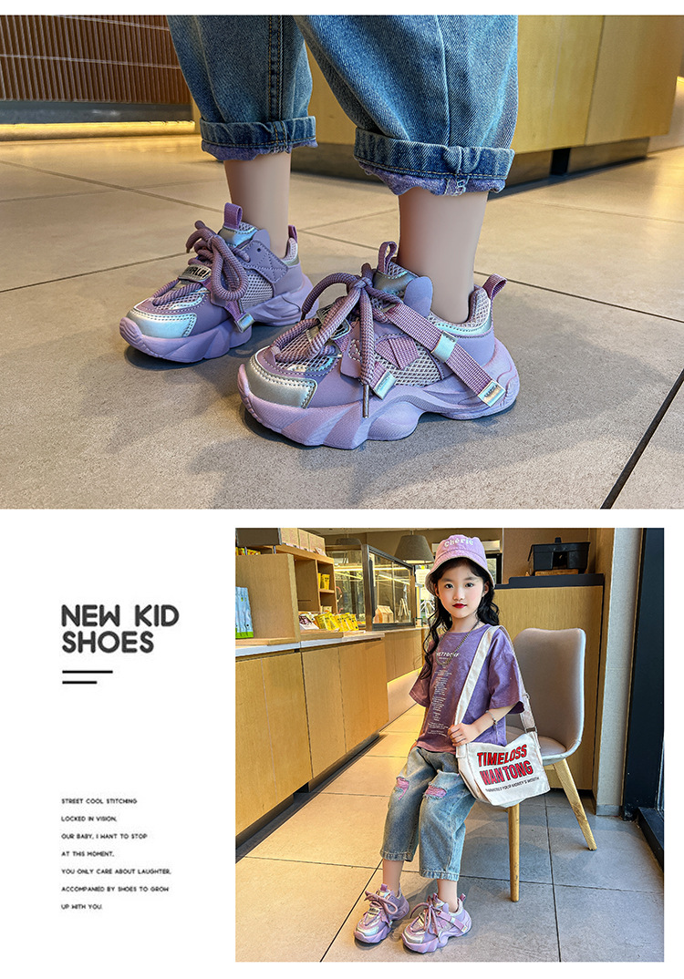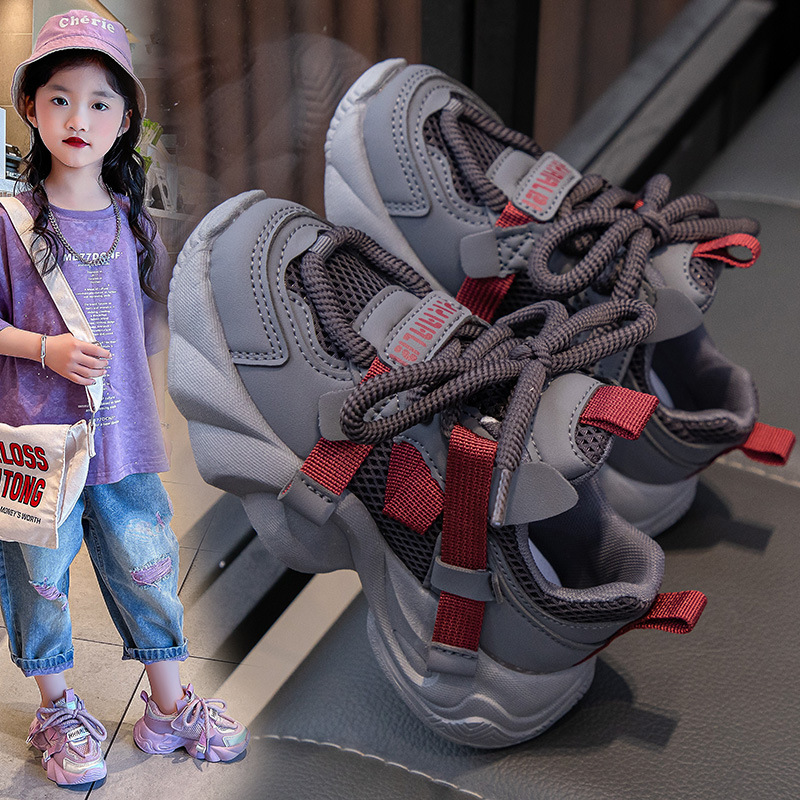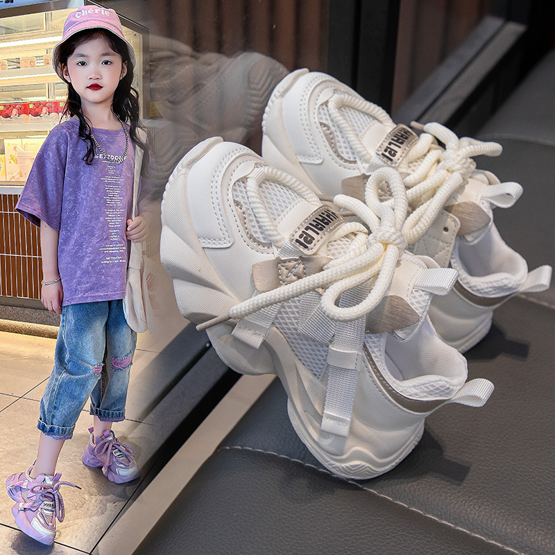 튀긴 거리 소년 신발 봄 2024 새로운 메쉬 부드러운 바닥 아빠 신발 어린이 스포츠 신발 소년 미끄럼 방지