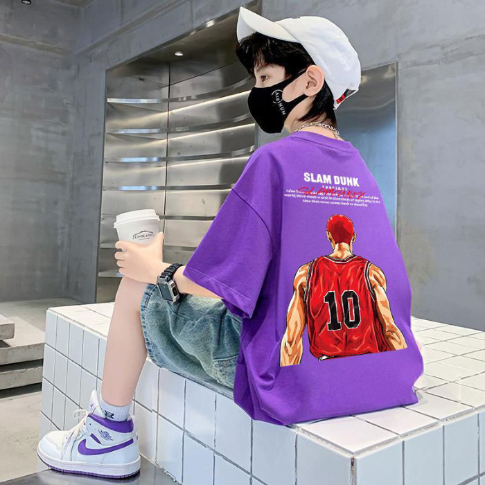 빅 보이즈 여름 반팔 티셔츠 뉴 2025 소년 아동면베이스 셔츠 시원하고 시원한 여름 탑 트렌디 K