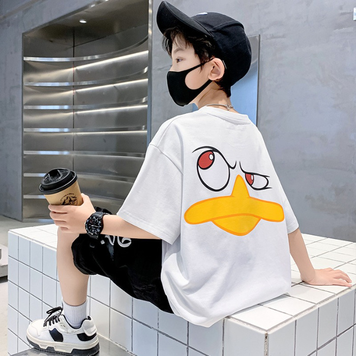 빅 보이즈 여름 반팔 티셔츠 뉴 2025 소년 아동면베이스 셔츠 시원하고 시원한 여름 탑 트렌디 K스토어 가기
