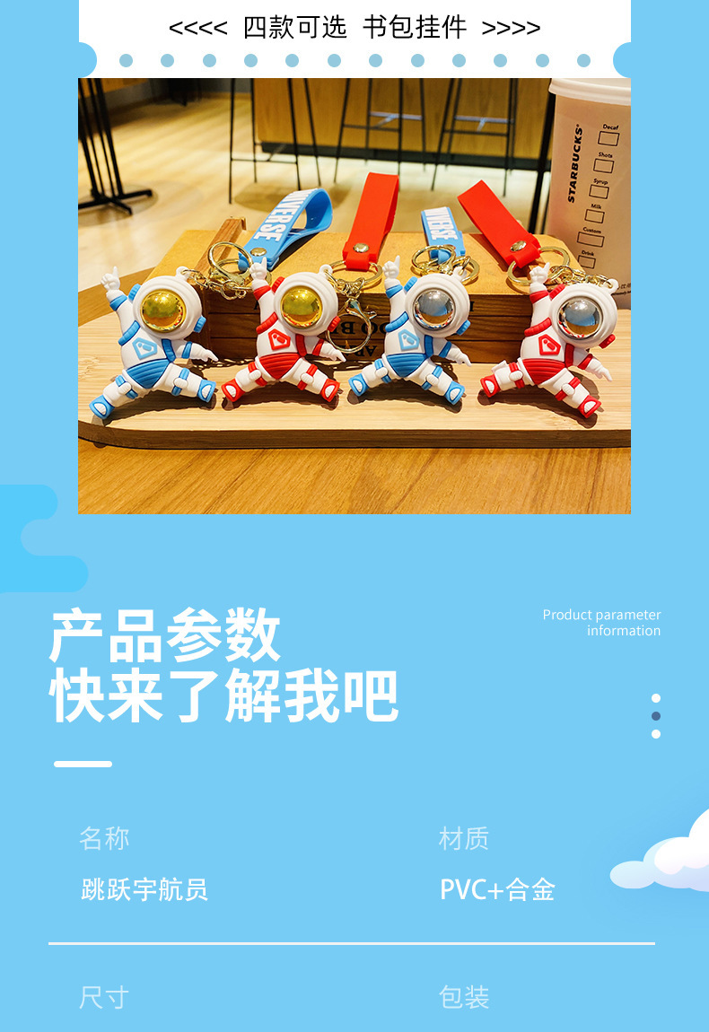 창조적 인 점프 우주 비행사 키 체인 귀여운 우주인 펜던트 자동차 키 체인 가방 교수형 선물 도매