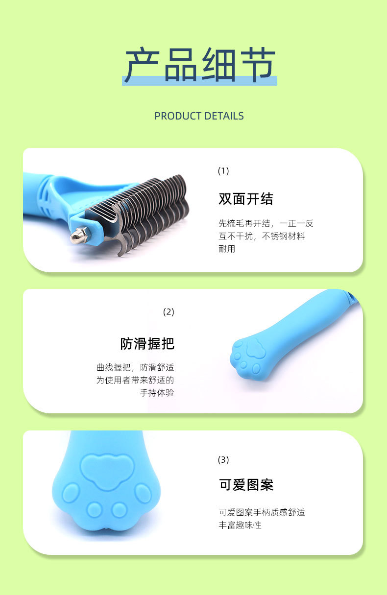 애완 동물 빗 콤버 개 빗 청소 아름다움 머리 제거 고양이 빗 양면 오픈 매듭 개 헤어 빗 인공물스토어 가기
