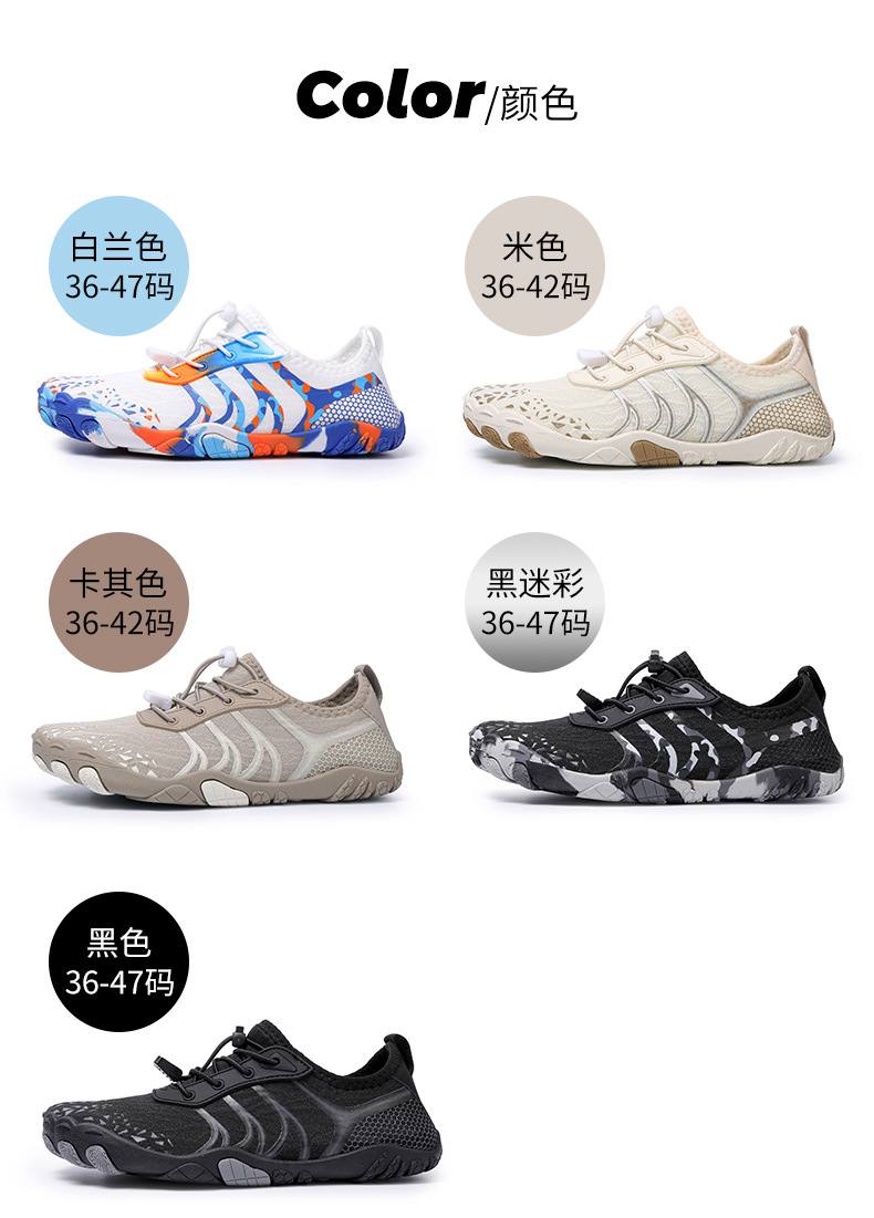 새로운 국경 야외 5 손가락 추적 신발 남성과 여성의 수영 바다 낚시 신발 경량 미끄럼 통기성 신발 다이빙 빠른 건조 신발