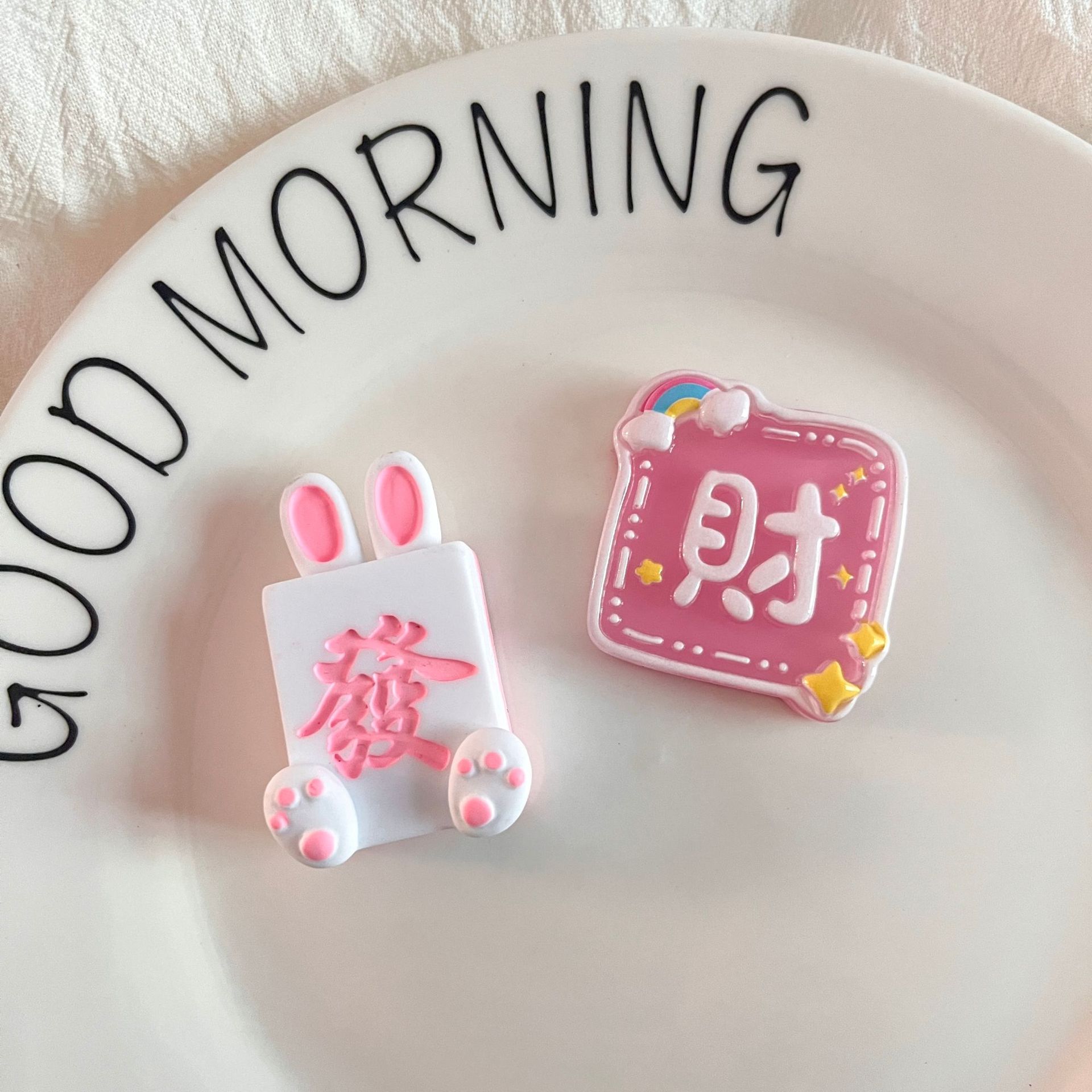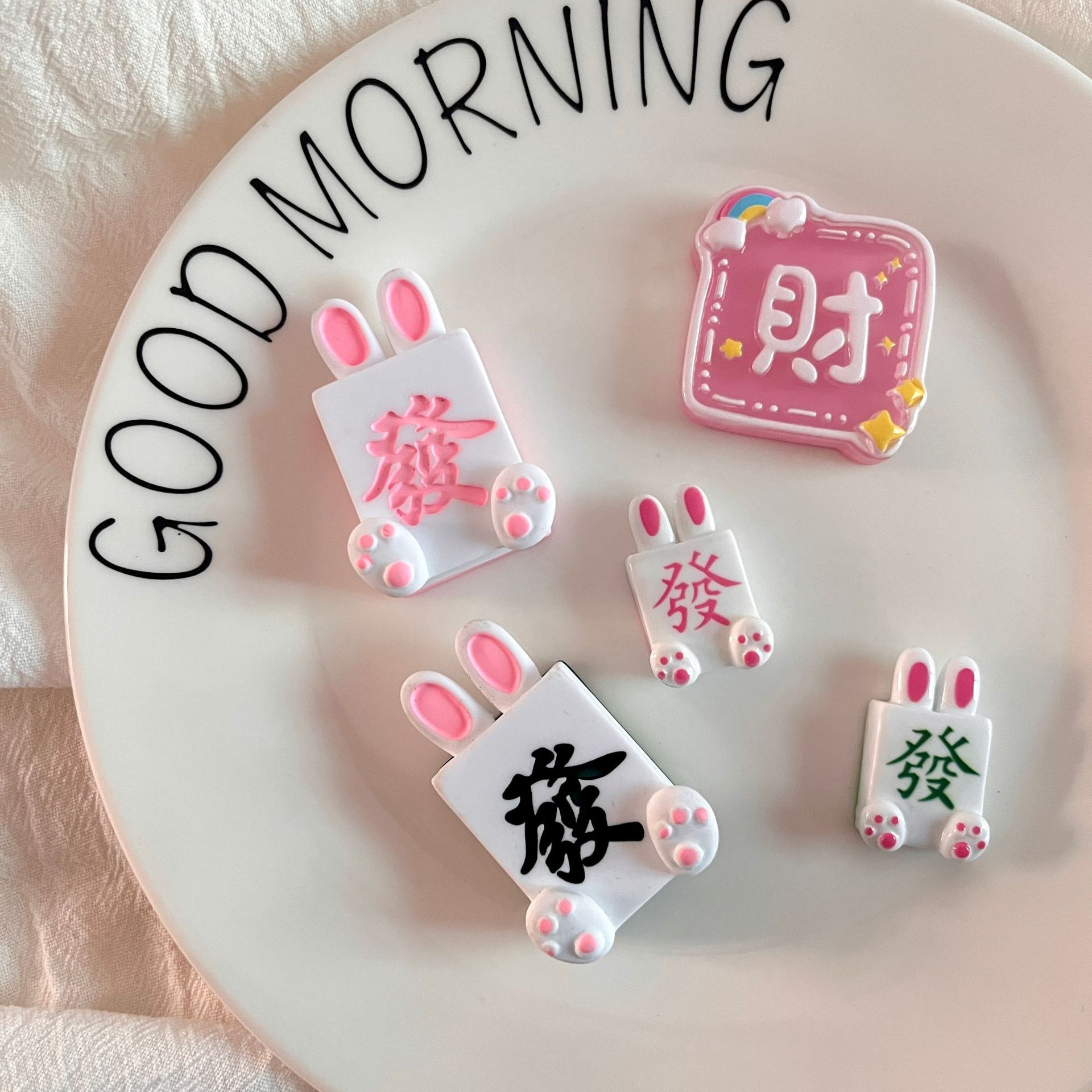 대형 크림 글루 핸드폰 케이스 행운의 토끼 마작 냉장고 자석 차량 장식품 미니어처 키체인 레진스토어 가기