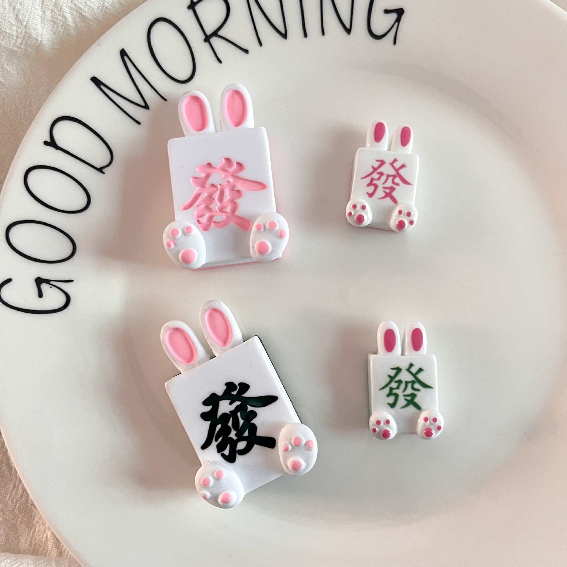 대형 크림 글루 핸드폰 케이스 행운의 토끼 마작 냉장고 자석 차량 장식품 미니어처 키체인 레진