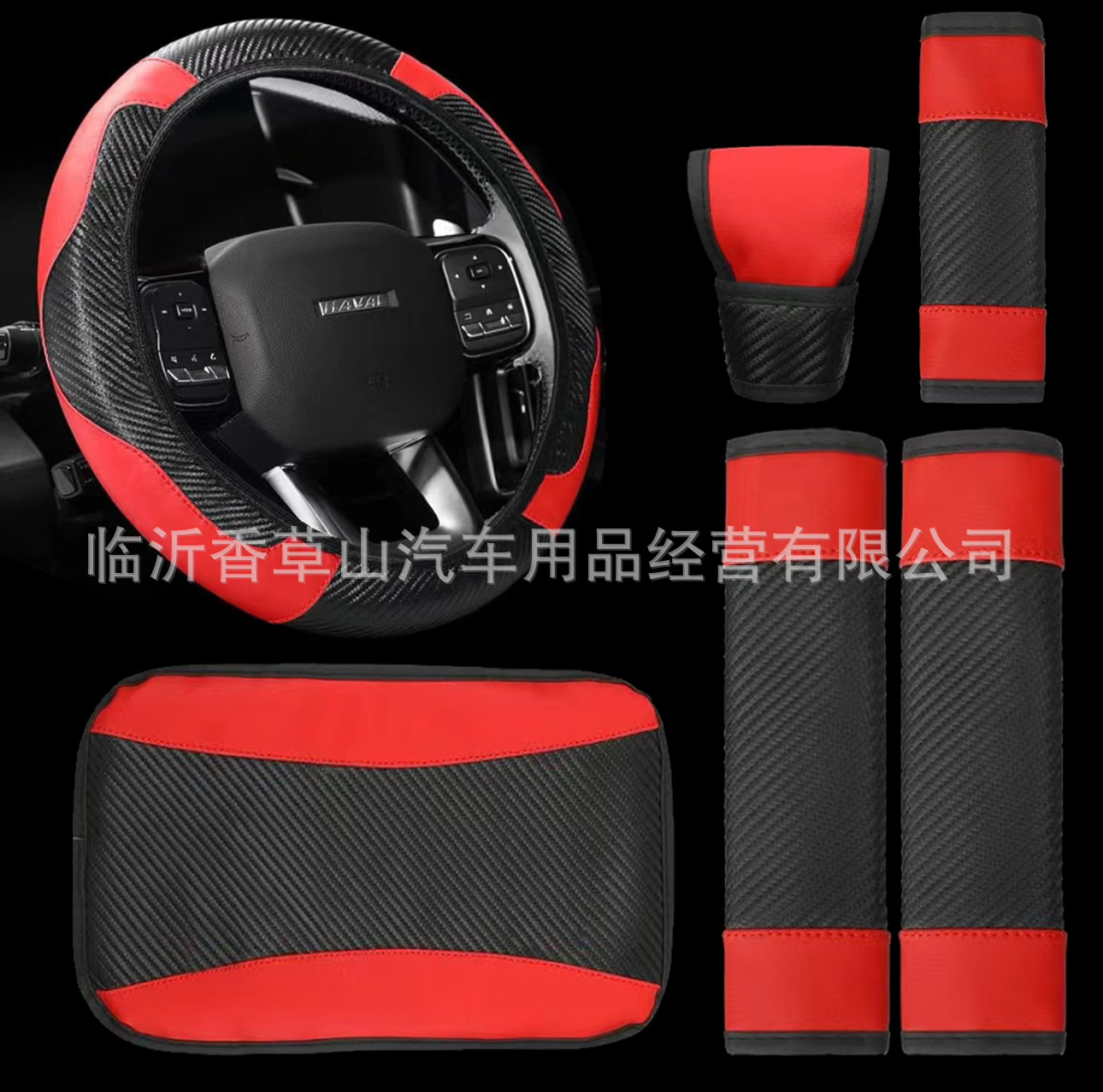 국경 간 자동차 스티어링 휠 커버 탄소 섬유 접합 스포츠 기어 커버 핸드 브레이크 커버 숄더 패드 팔걸이 박스 패드 6 피스 세트