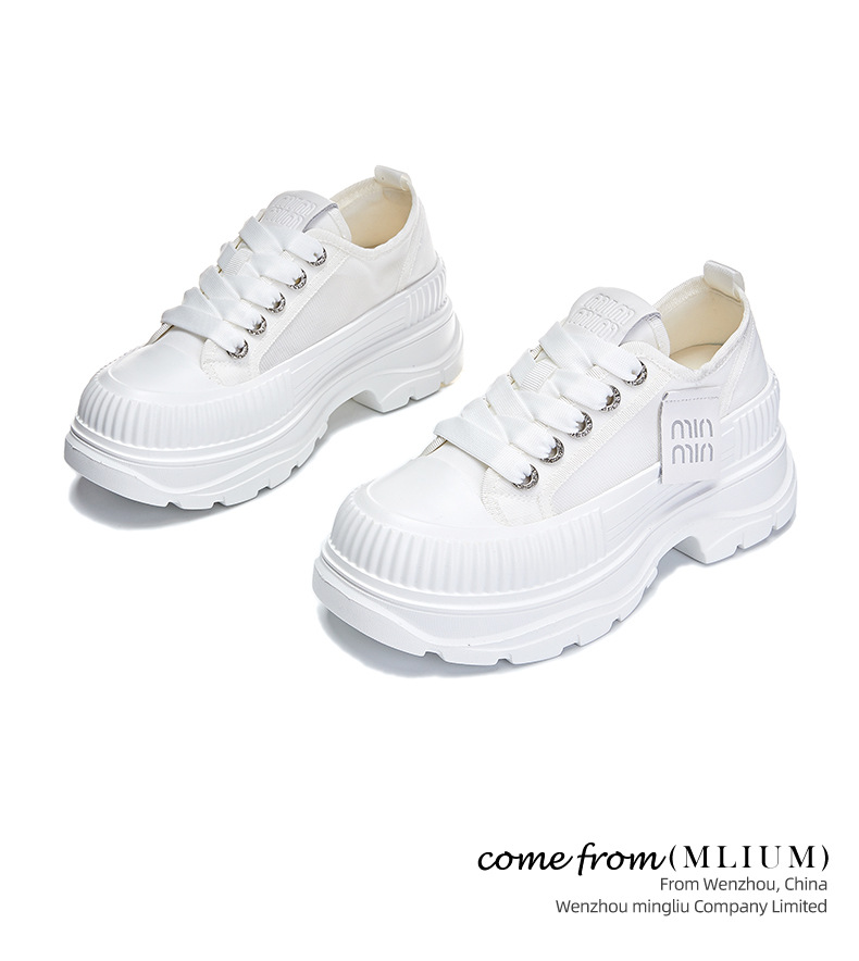 발포 바닥 가죽 흰색 신발 여성의 2024 여름 새로운 두꺼운 밑창 증가 통기성 스포츠 여성 신발 올매치 신발 여성용스토어 가기