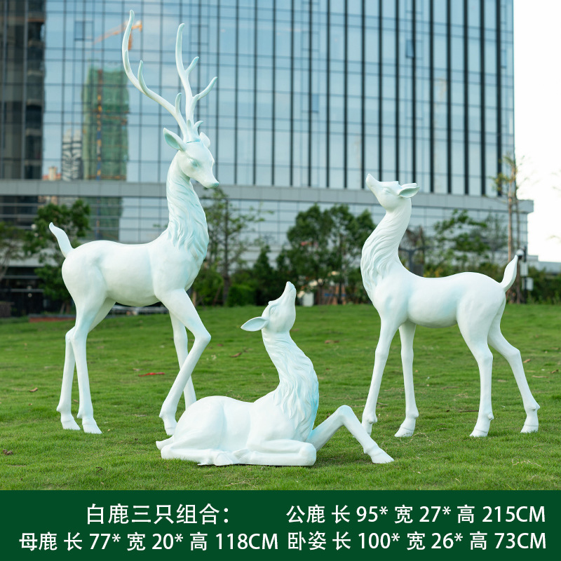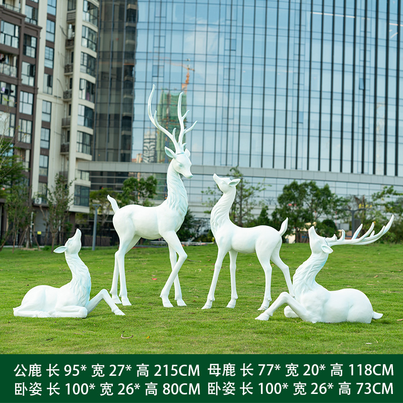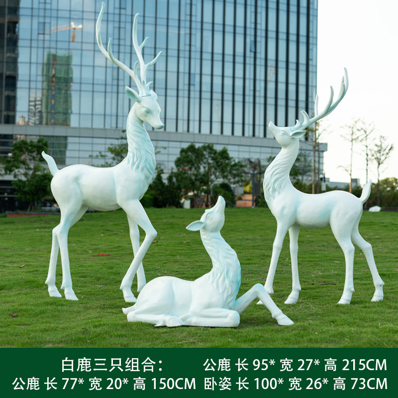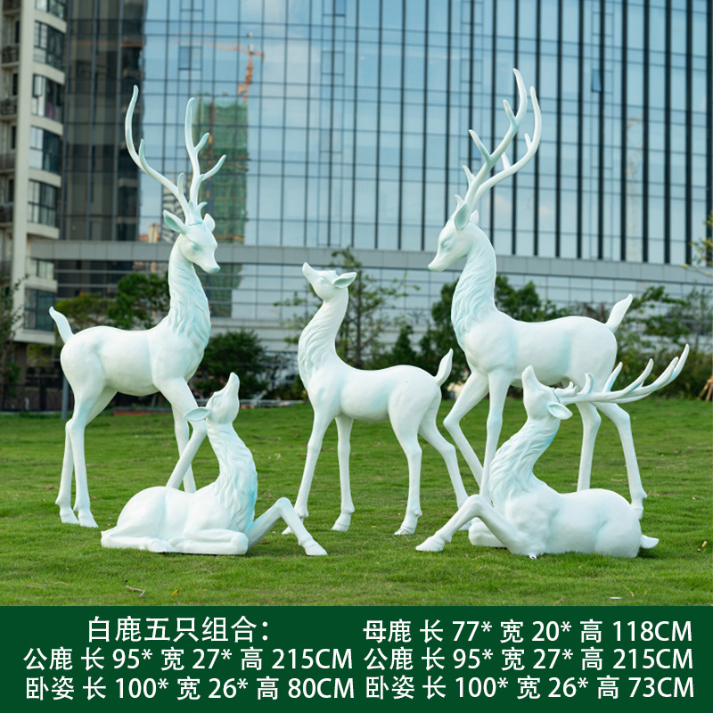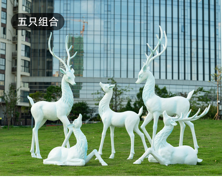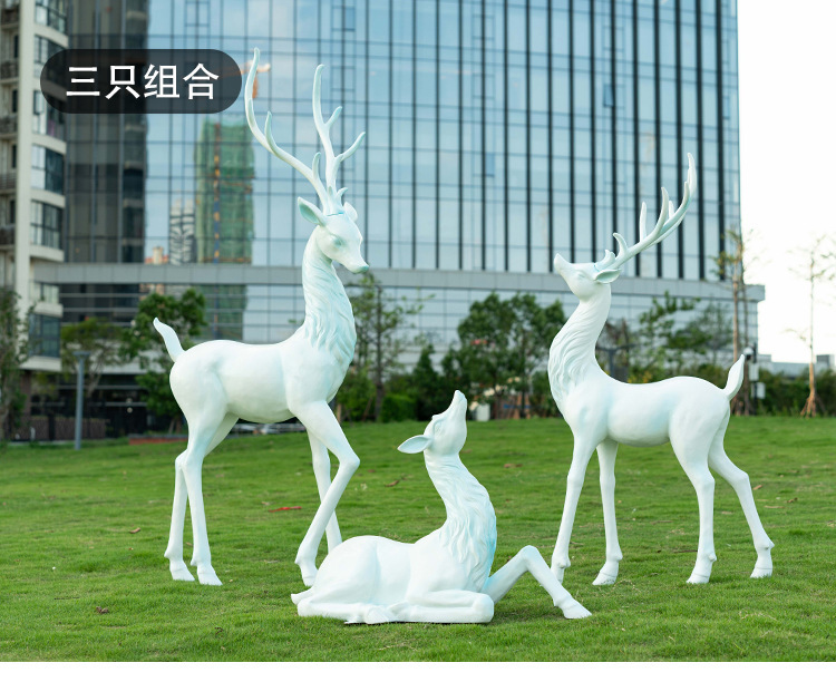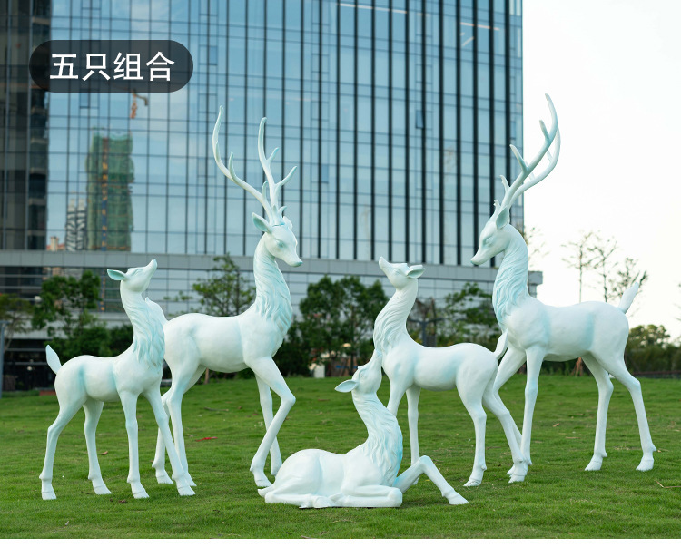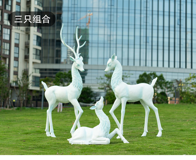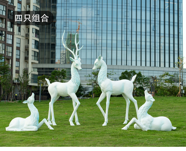 정원 풍경 추상 흰색 사슴 조각 야외 유리 섬유 강화 엘크 꽃과 지상 아름다운 첸 장식 경치 지역 미화스토어 가기
