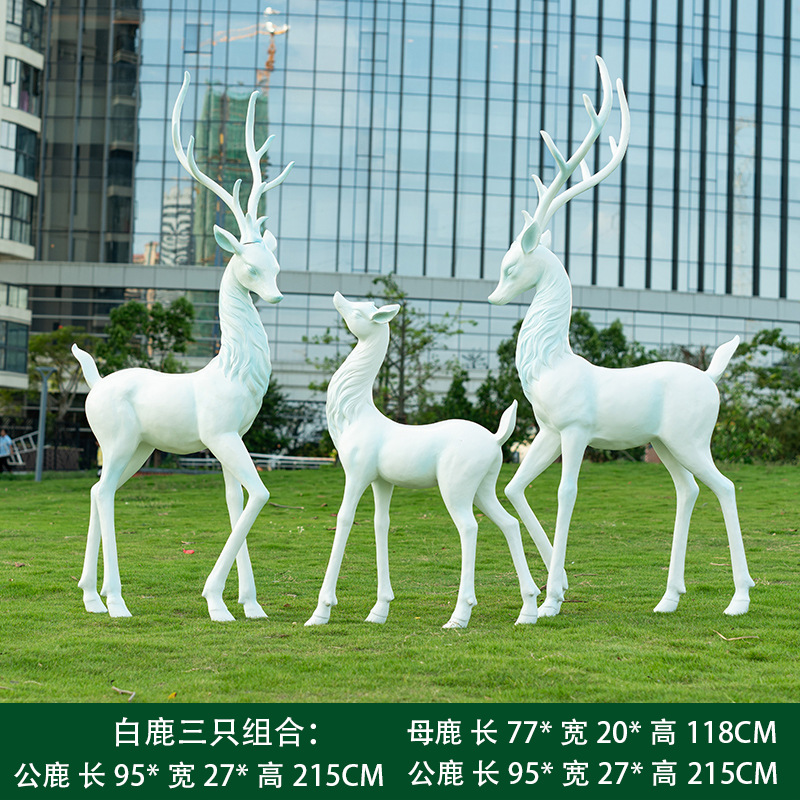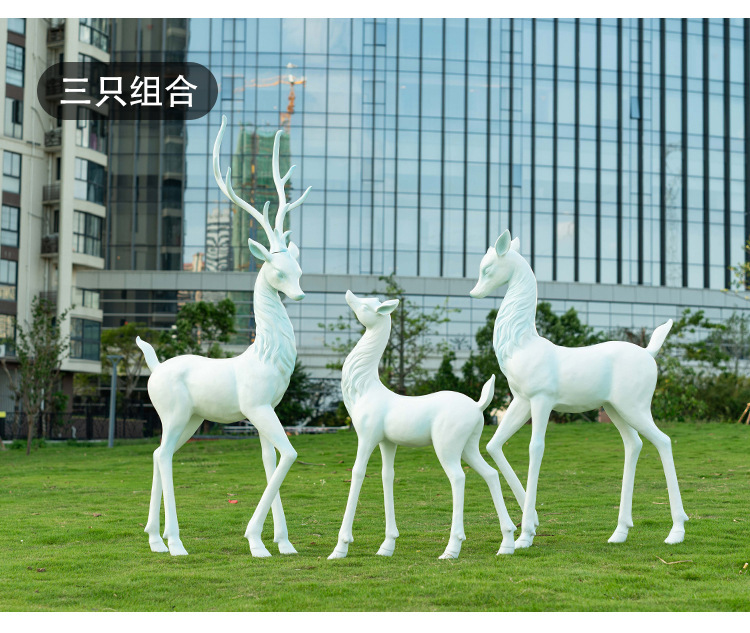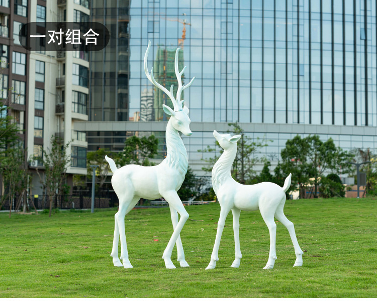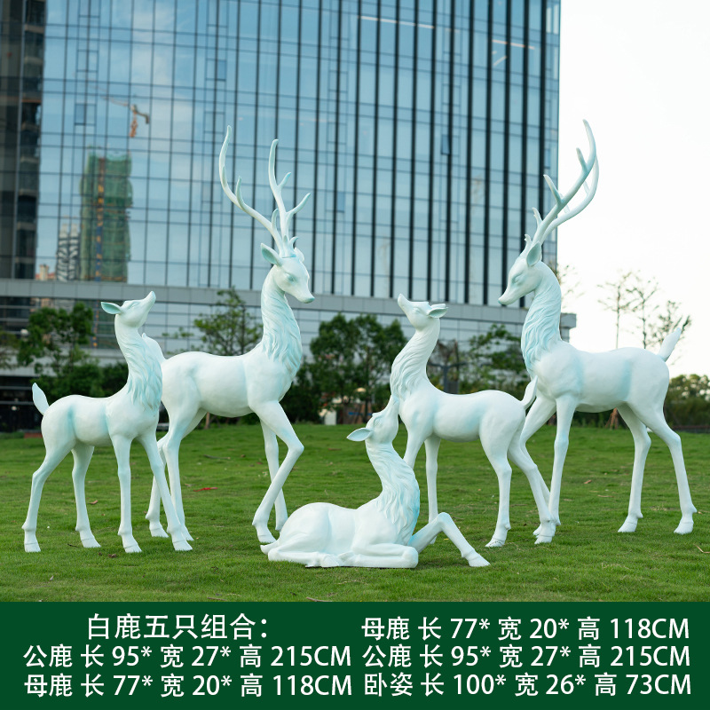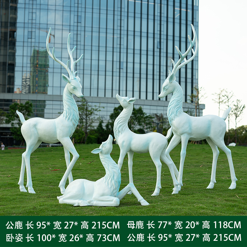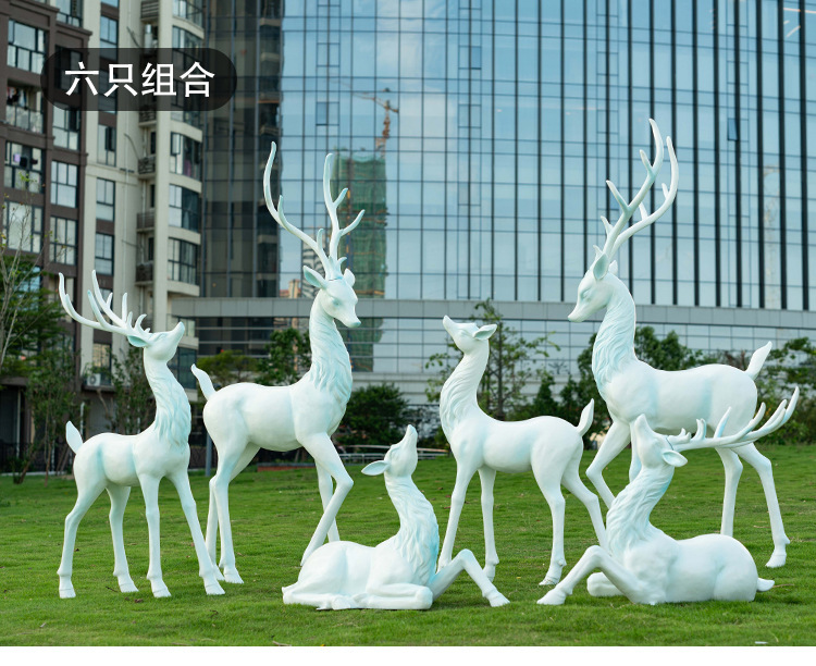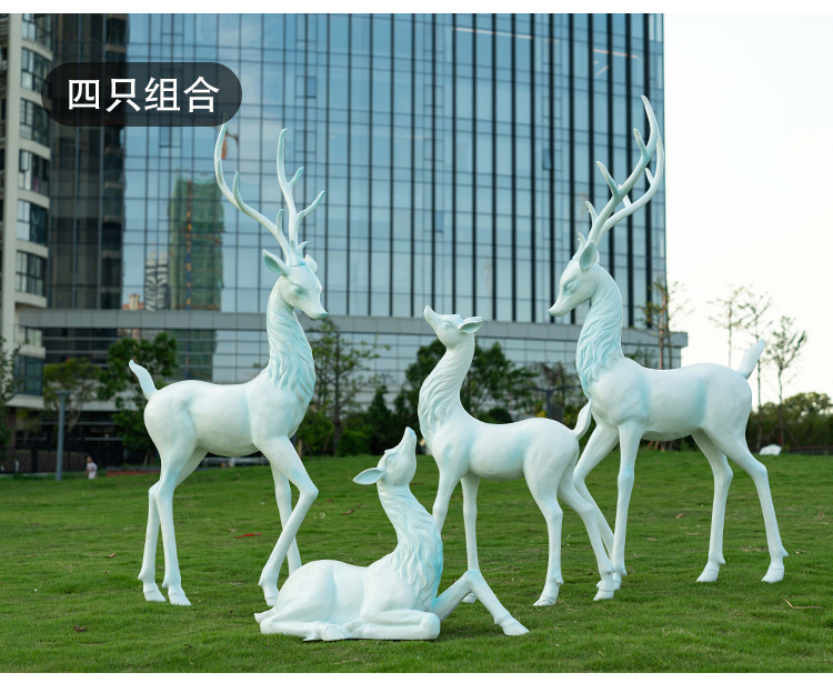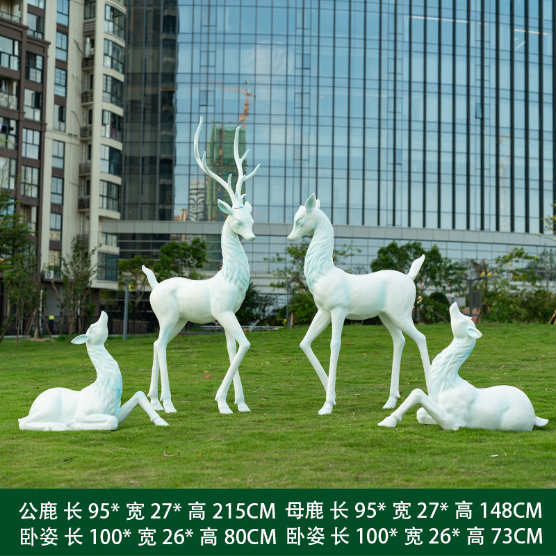 정원 풍경 추상 흰색 사슴 조각 야외 유리 섬유 강화 엘크 꽃과 지상 아름다운 첸 장식 경치 지역 미화스토어 가기