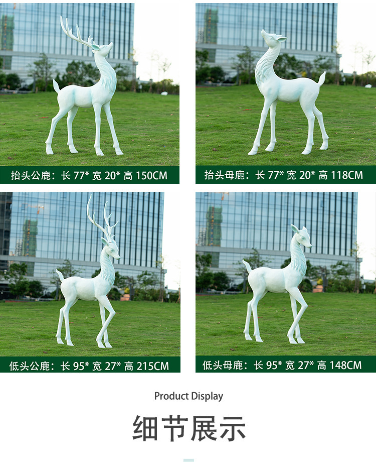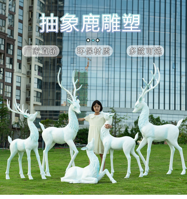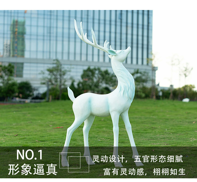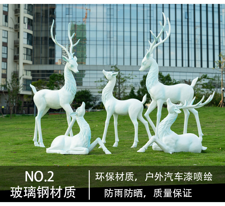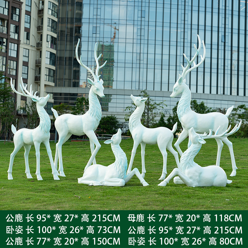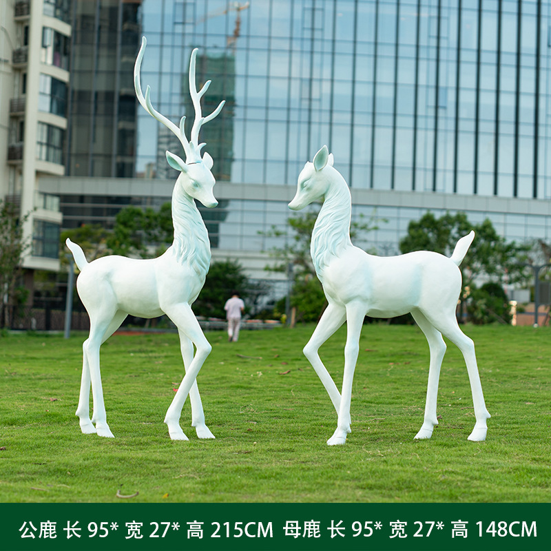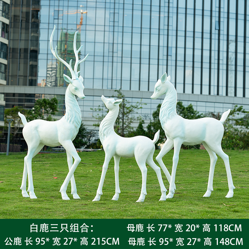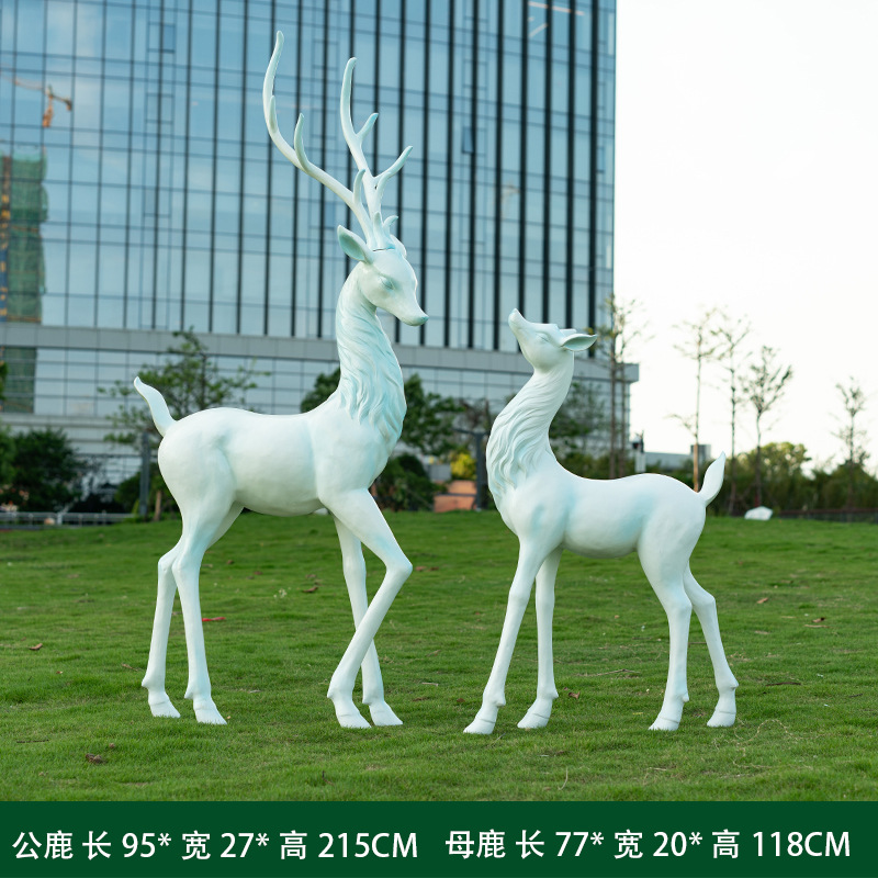 정원 풍경 추상 흰색 사슴 조각 야외 유리 섬유 강화 엘크 꽃과 지상 아름다운 첸 장식 경치 지역 미화스토어 가기