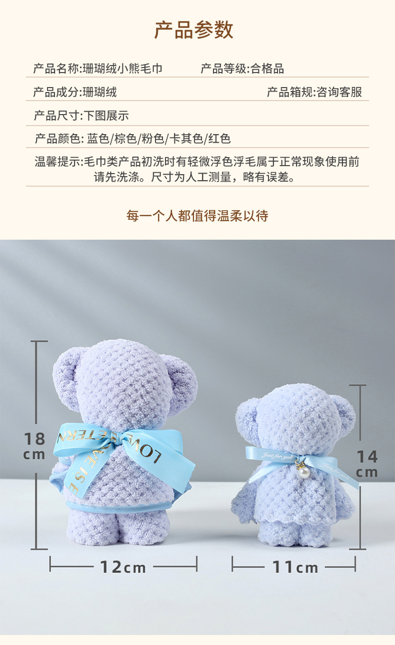 산호 벨벳 곰 수건 도매 신부 들러리 손 선물 작은 선물 유치원 선물 오프닝 복지 모델링 수건