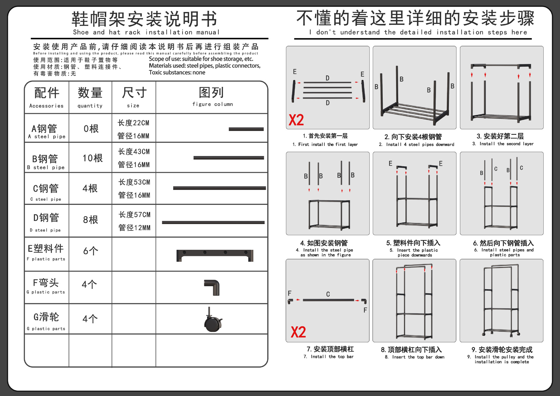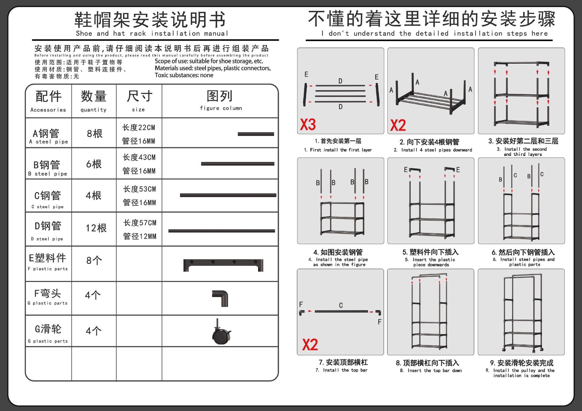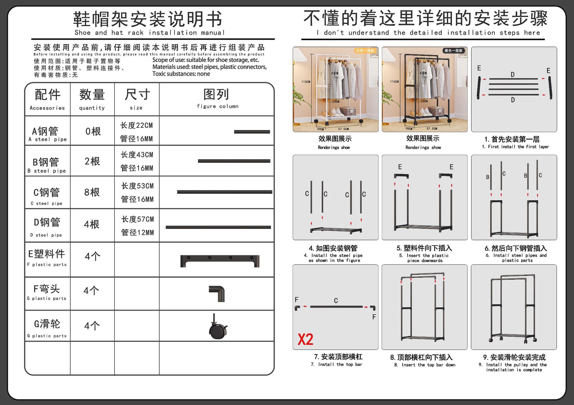 材质:塑料配件+16mm+12mm烤漆管子