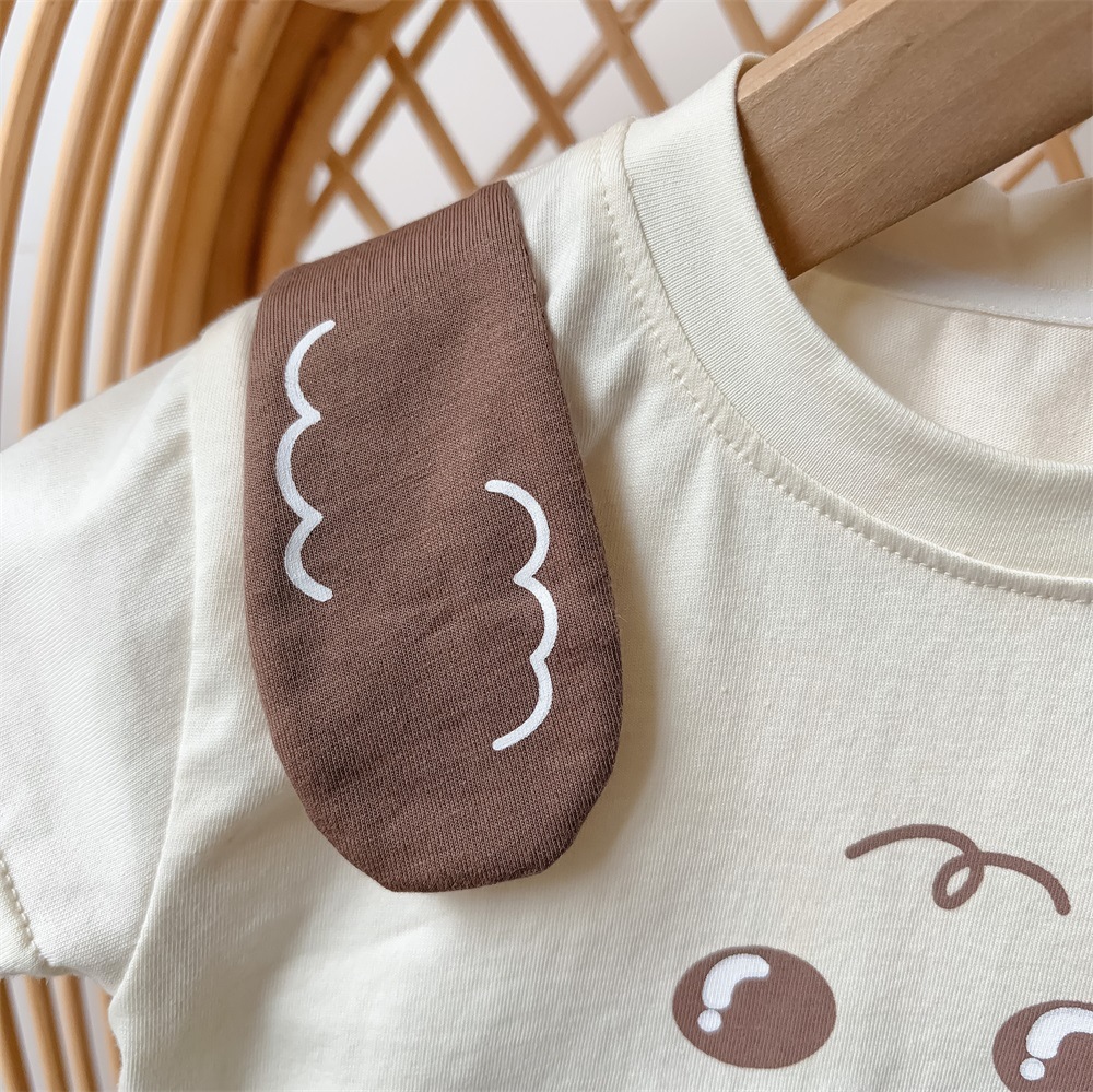 한국 아동복 2024 여름 얇은 만화 세트 1-3 세 소년 반팔 티셔츠 반바지 유행 투피스 세트