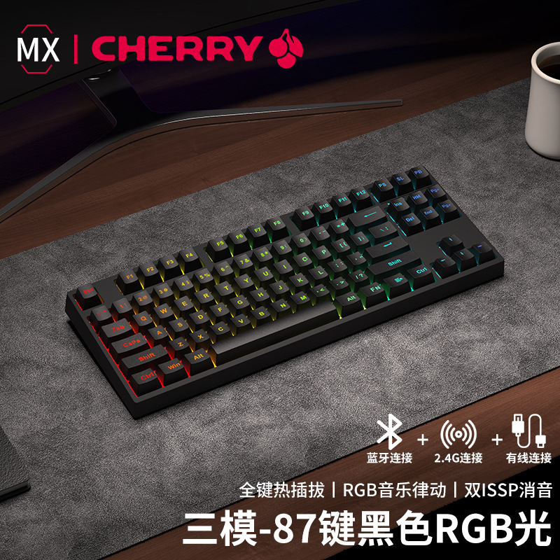 • 체리 MX RGB-87 키-체리 파우더 RGB [무선 블루투스 트리플 모드]-풀 키 핫 플러그-블랙 샤프트