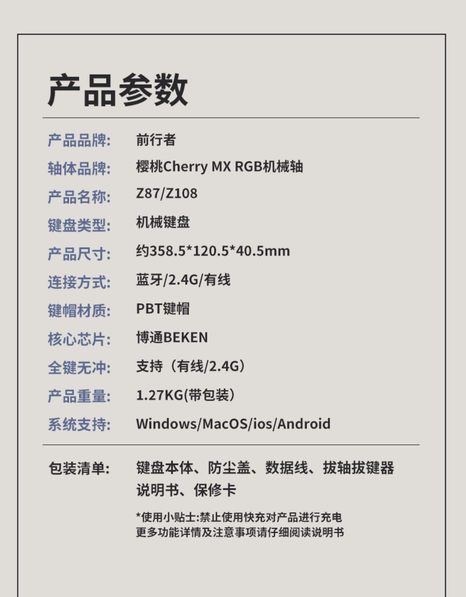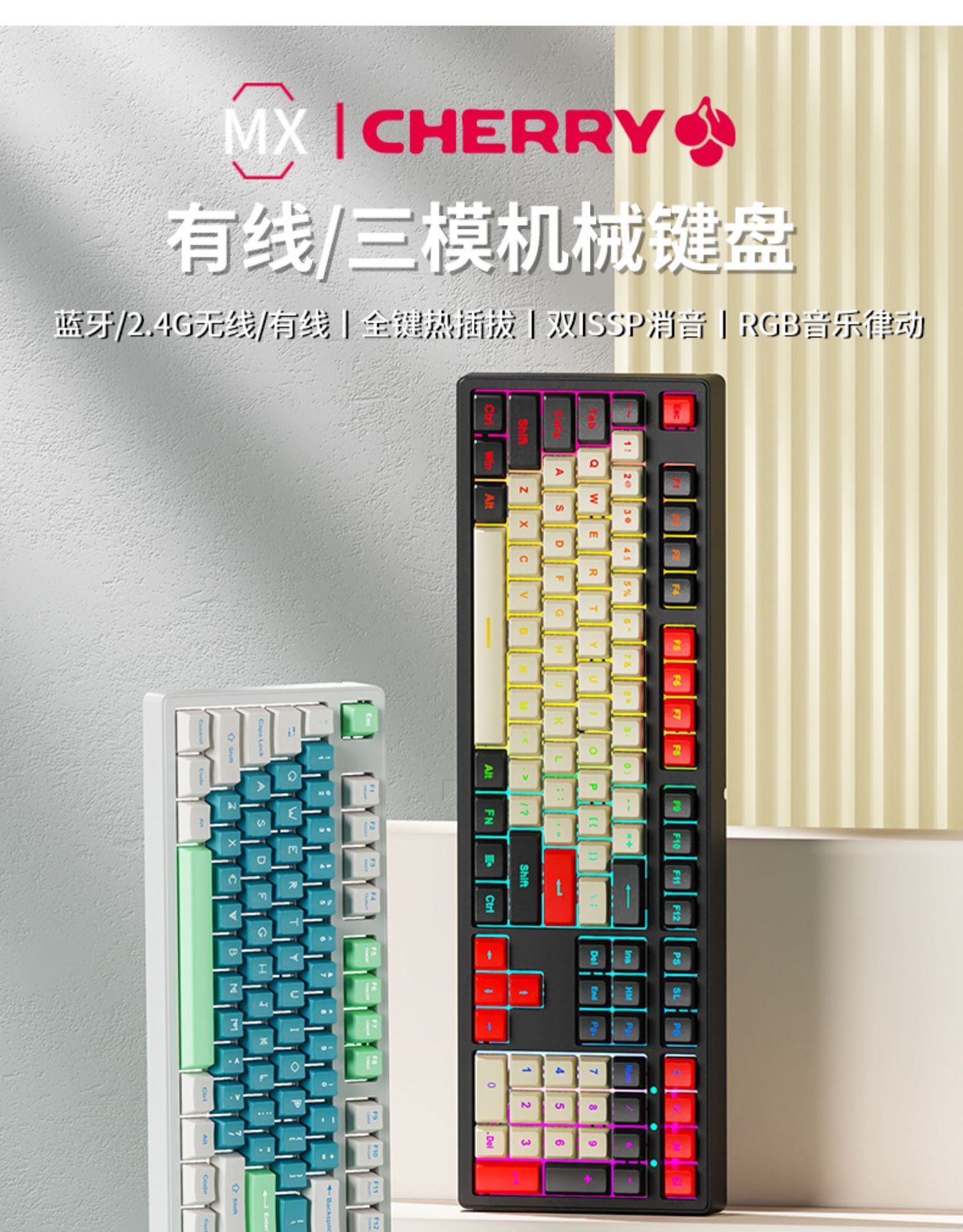 • 체리 MX RGB-108 키-체리 파우더 RGB [무선 블루투스 트리플 모드]-풀 키 핫 플러그-그린 샤프트