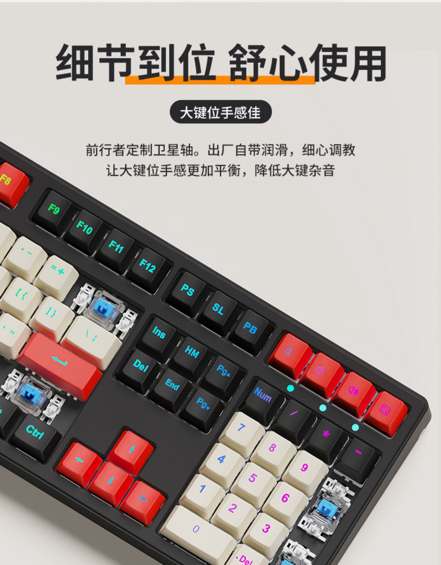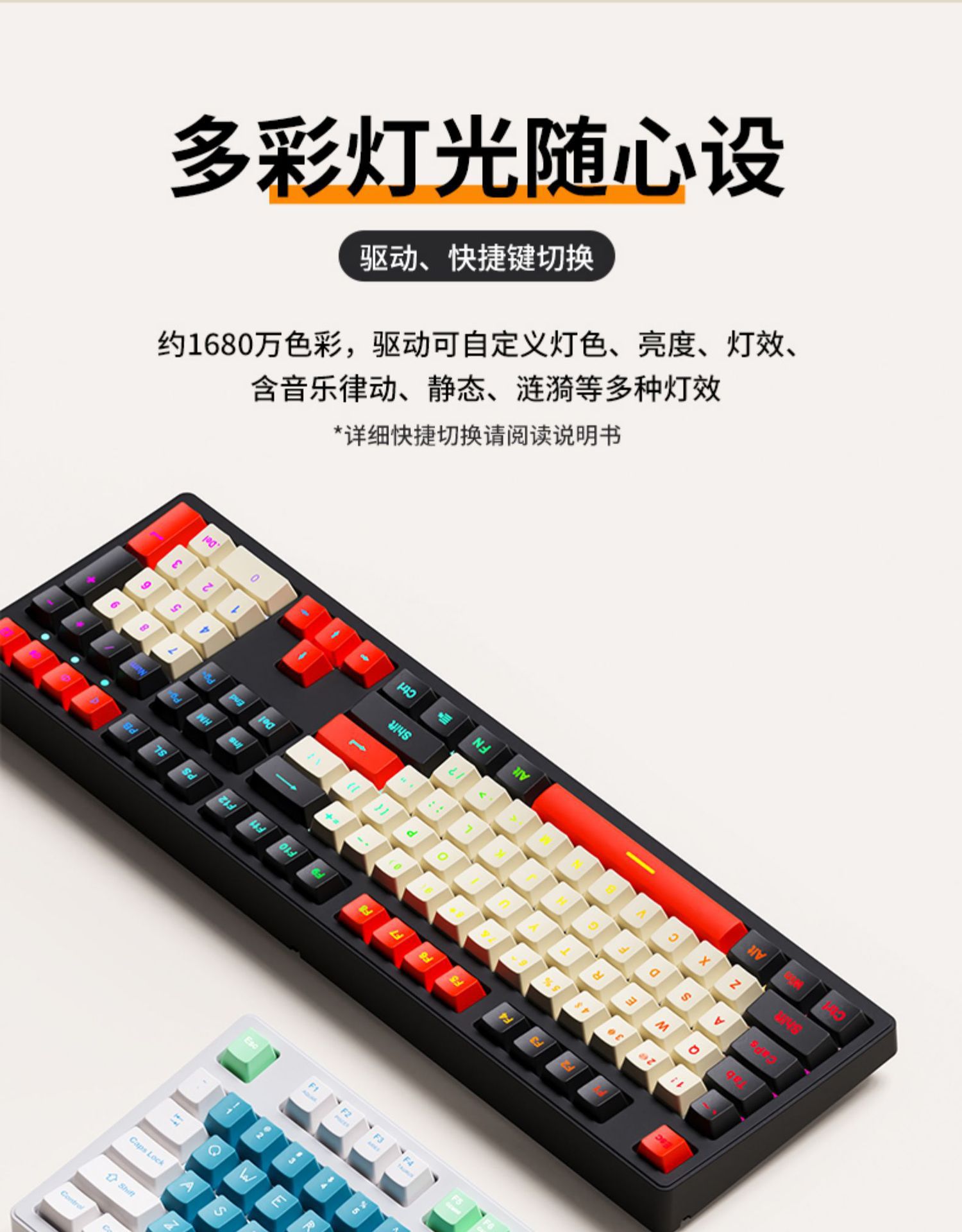 • 108 키 화이트 체리 유선 화이트 다운 라이트-레드 축