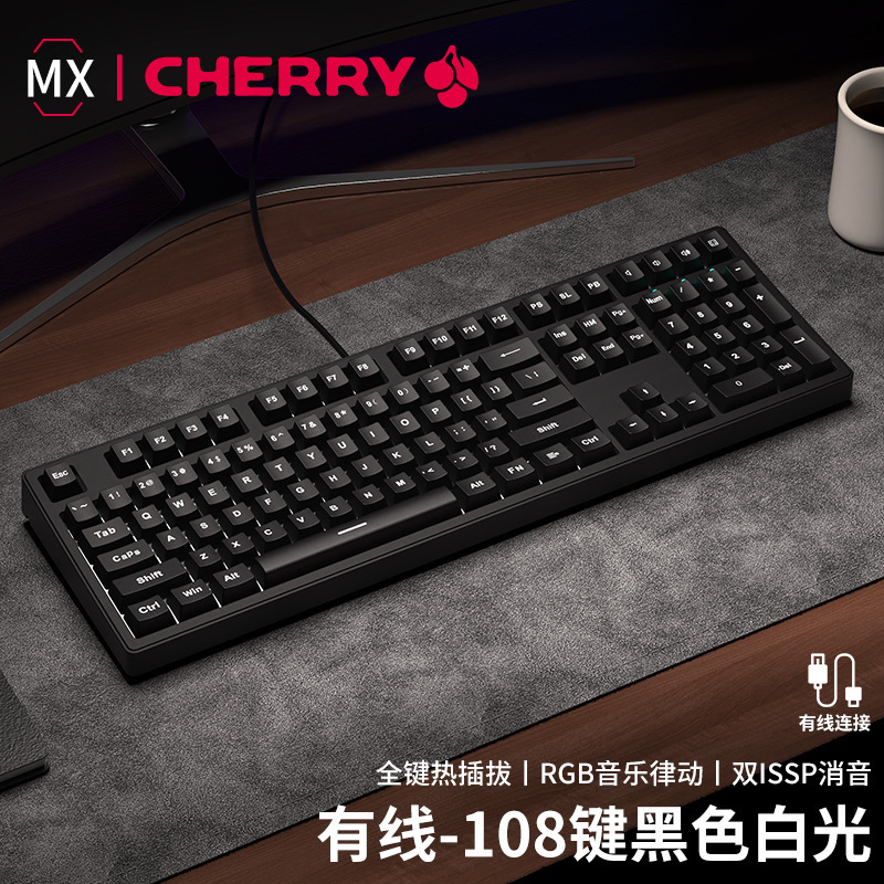 • 체리 MX 화이트 라이트-108 키 넷 화이트 라이트 [유선 버전]-풀 키 핫 플러그-블랙 샤프트