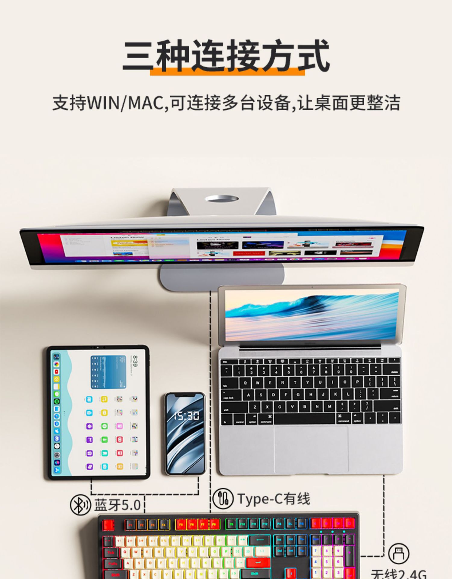 • 체리 MX RGB-108 키 넷 화이트 RGB [무선 블루투스 트리플 모드]-풀 키 핫 플러그 티 샤프트