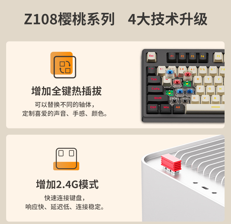 Forerunner Z108 유선 무선 블루투스 3 모드 기계 키보드 체리 축 고객이 만든 전자 스포츠 게임 사무실