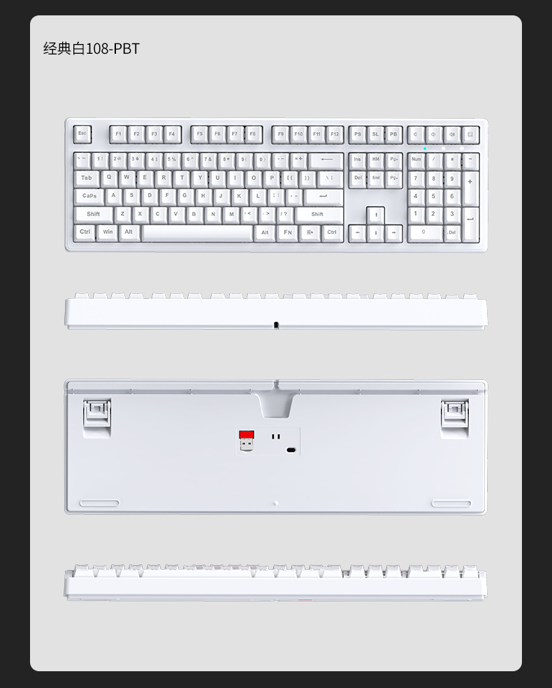 • 체리 MX 화이트 라이트-108 키 넷 화이트 라이트 [유선 판]-풀 키 핫 플러그-레드 축