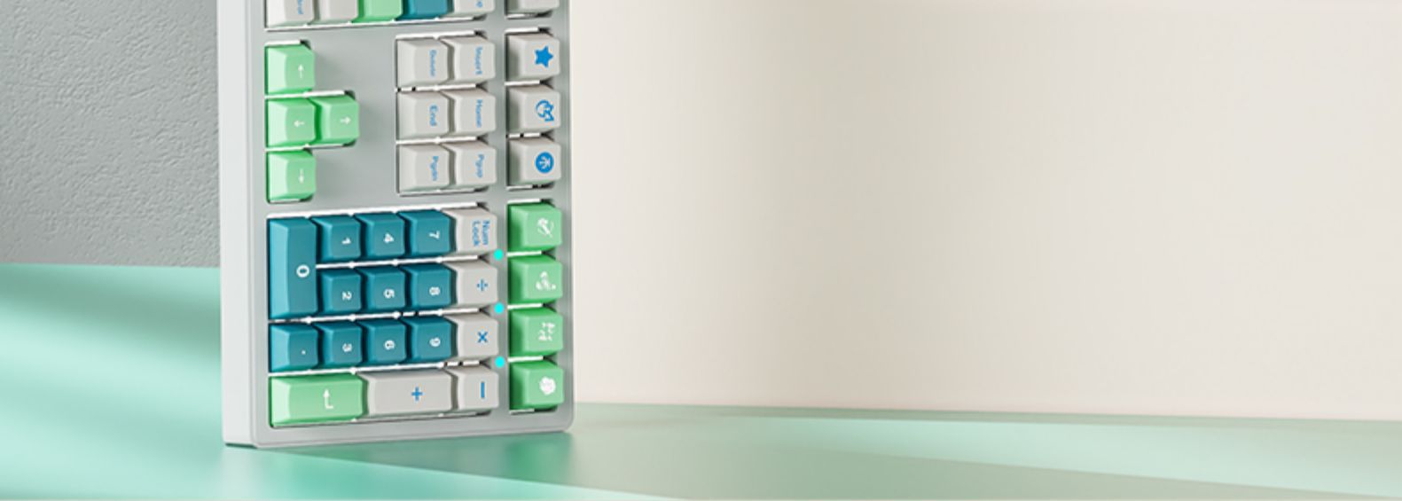 • 87 키 블랙 체리 유선 흰색 빛 아래 밝은 녹색 샤프트