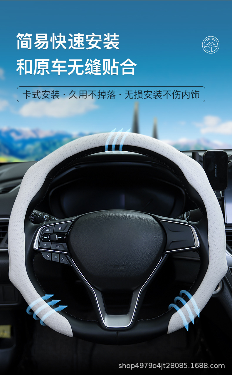 제너럴 모터스 나파 가죽 압력 구멍 통기성 스티어링 휠 커버 트렌디 한 새로운 5D 모양의 자동차 핸들 커버