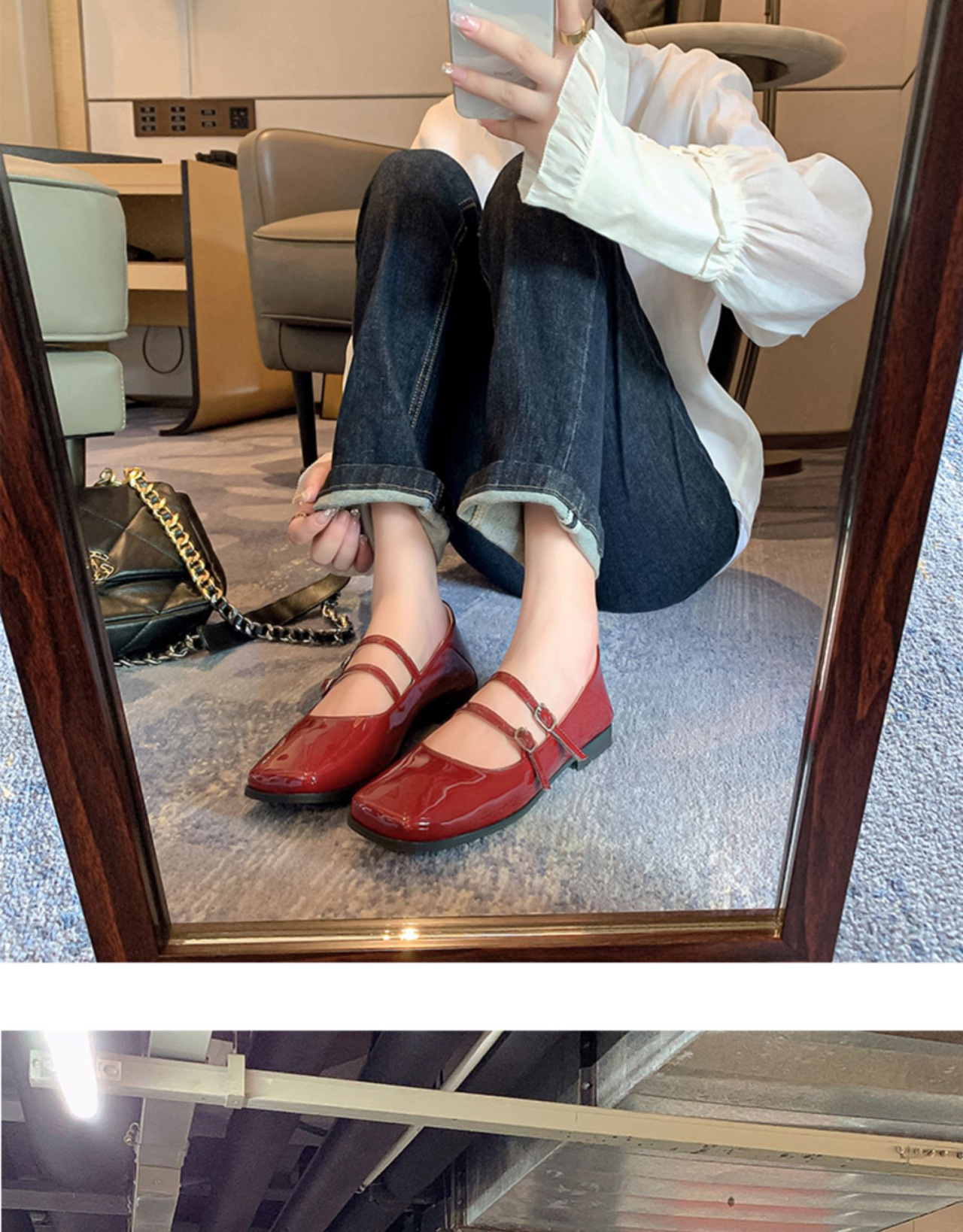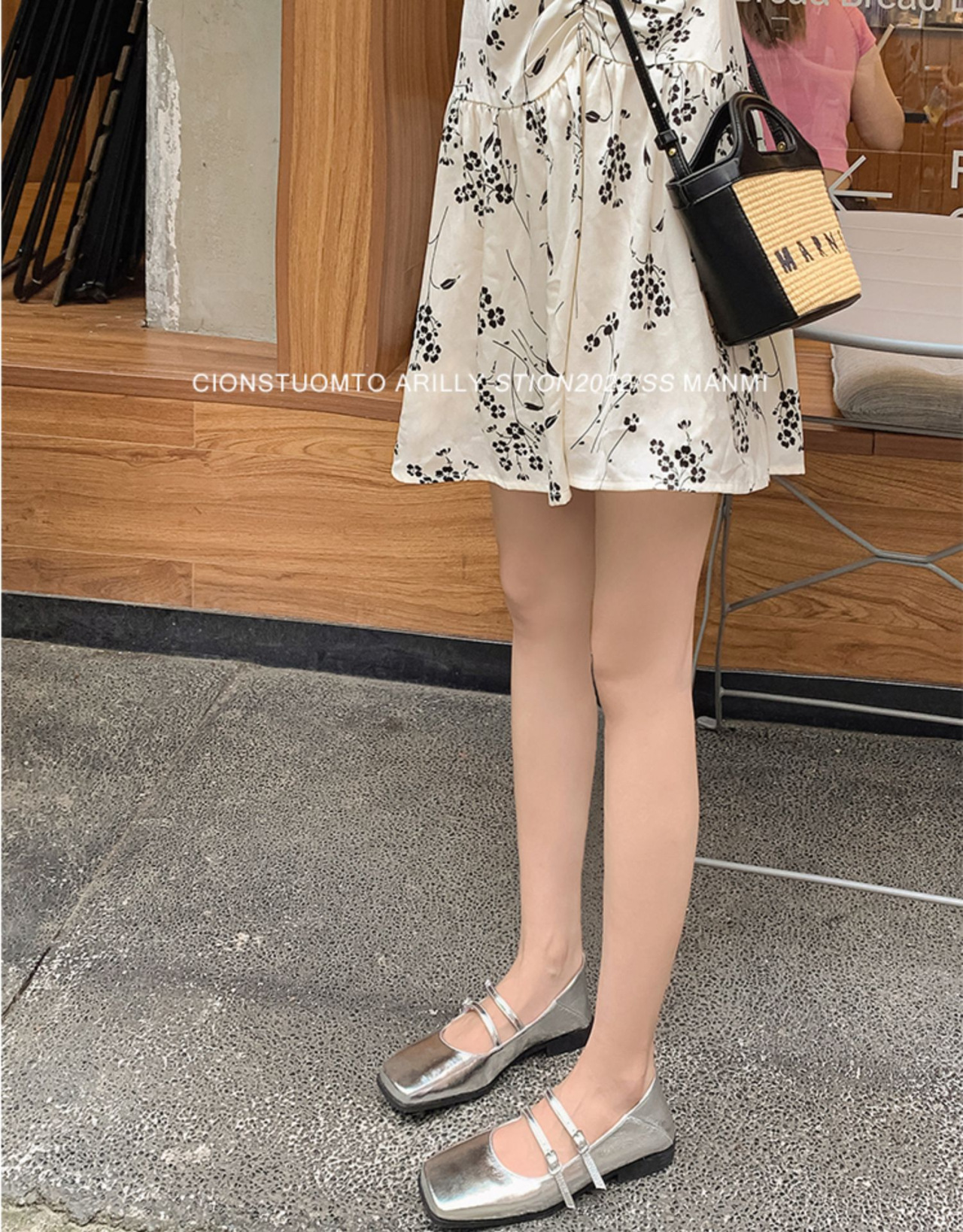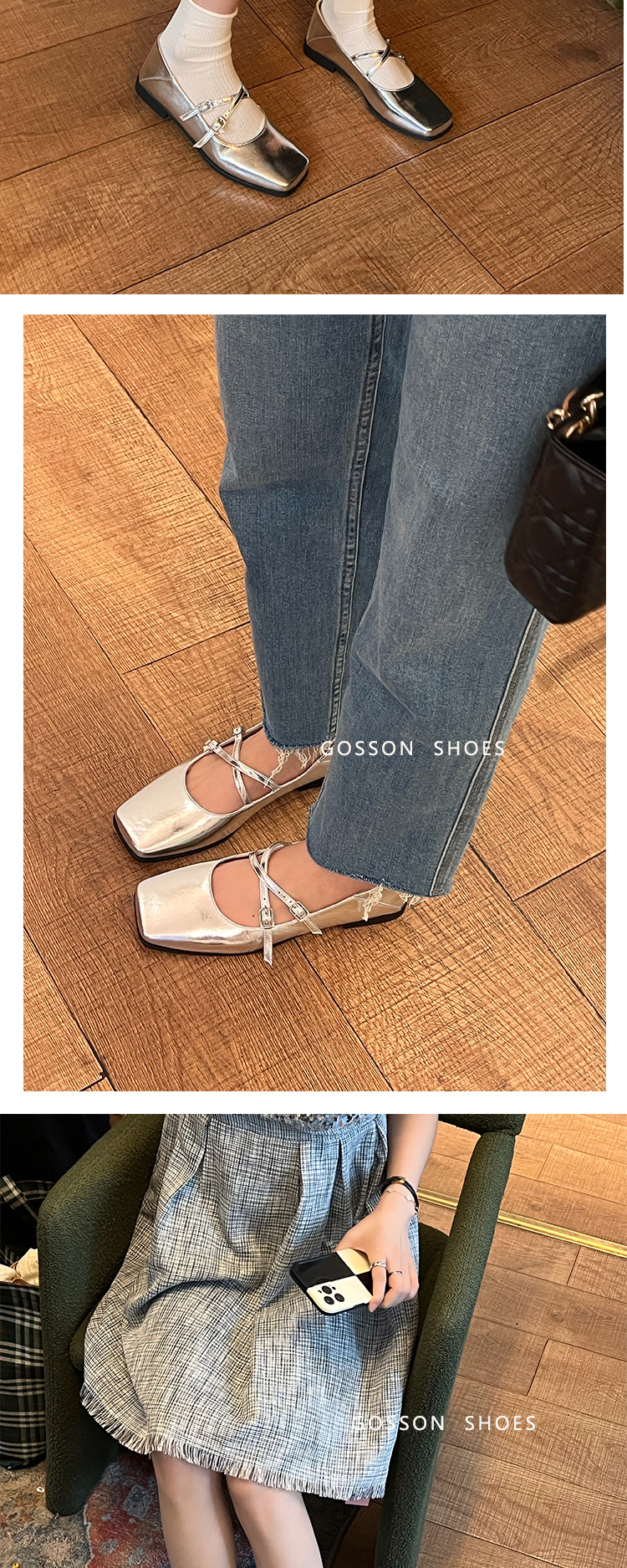 프랑스 저녁 브리즈 실버 신발 여성 플랫 2024 봄 새로운 우아한 요정 통근 광장 머리 얕은 입 메리 제인스토어 가기