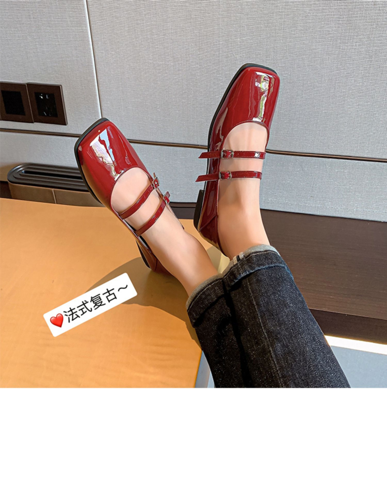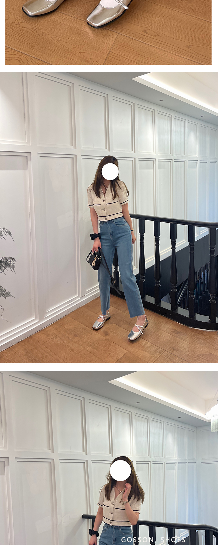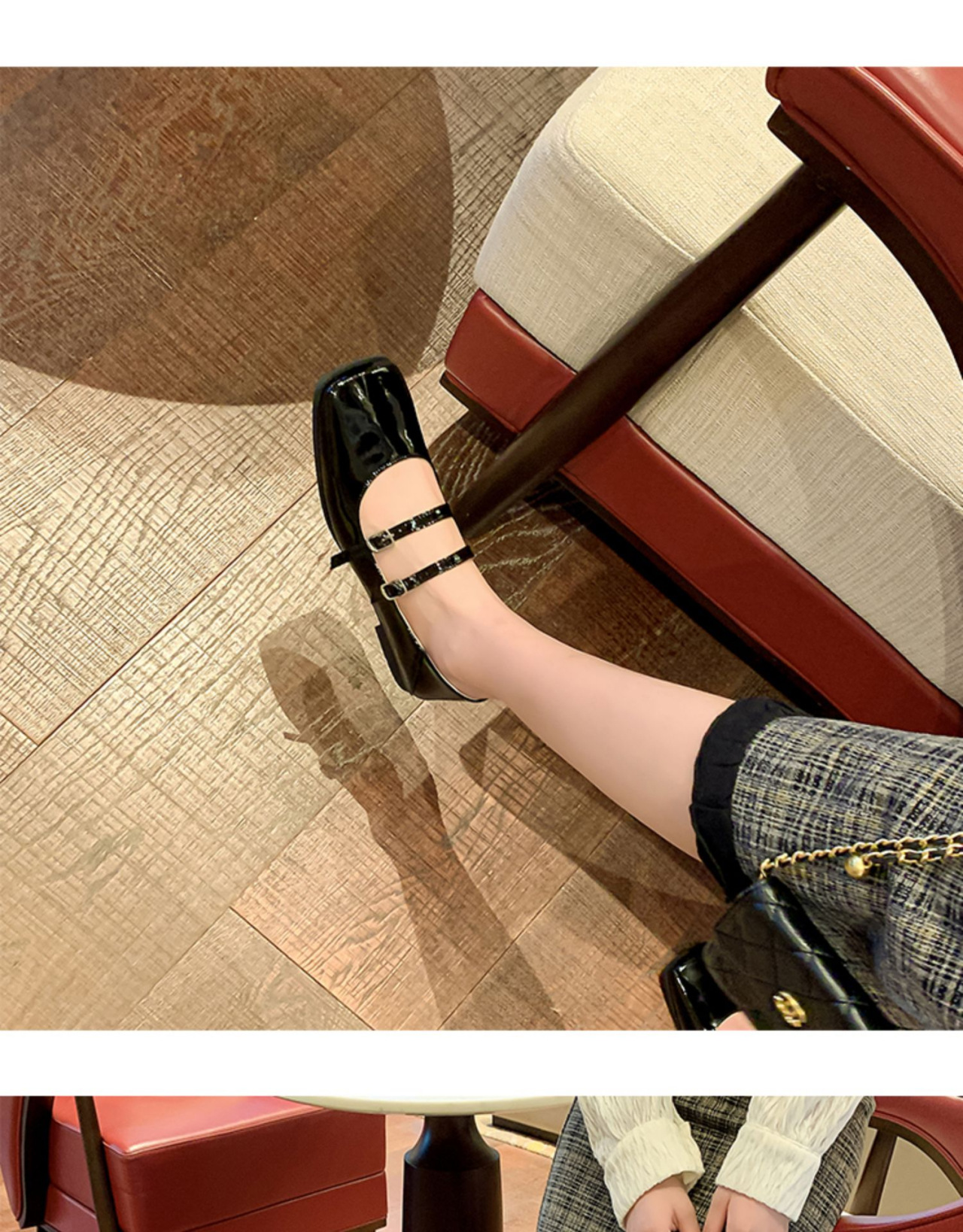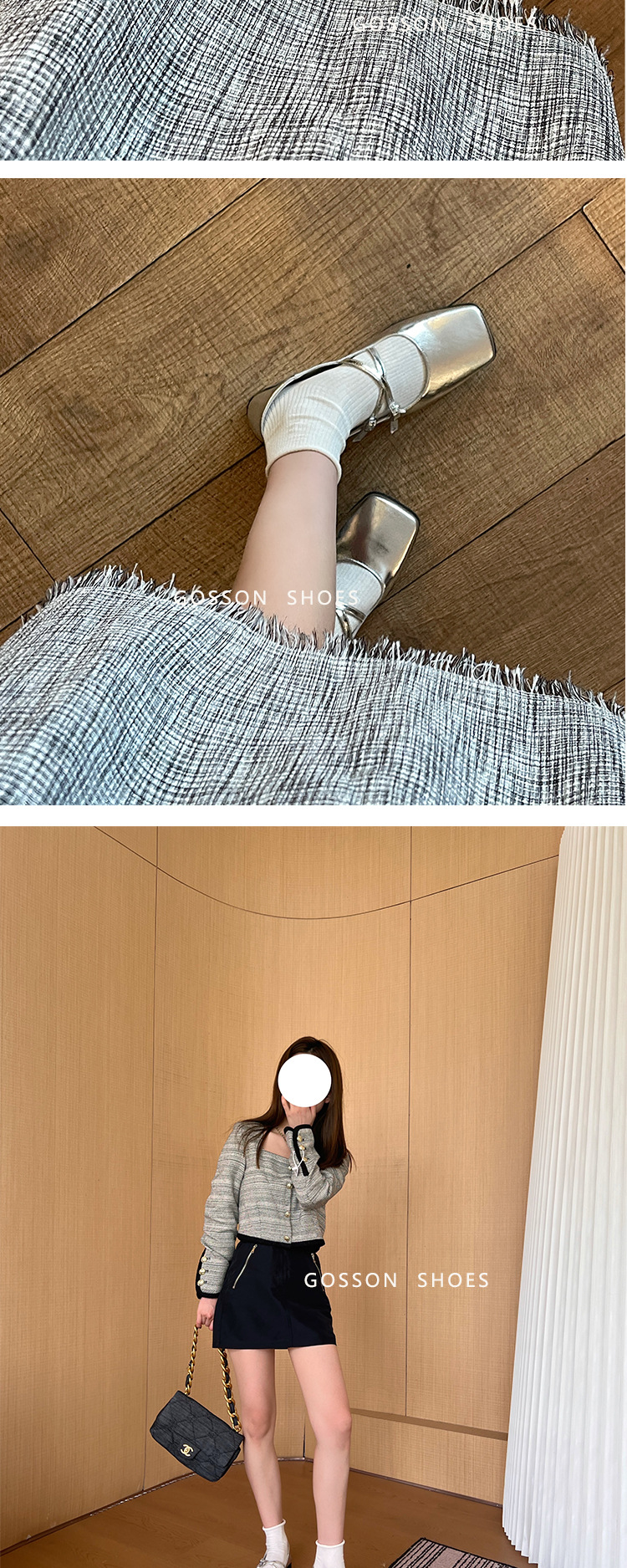 프랑스 저녁 브리즈 실버 신발 여성 플랫 2024 봄 새로운 우아한 요정 통근 광장 머리 얕은 입 메리 제인스토어 가기