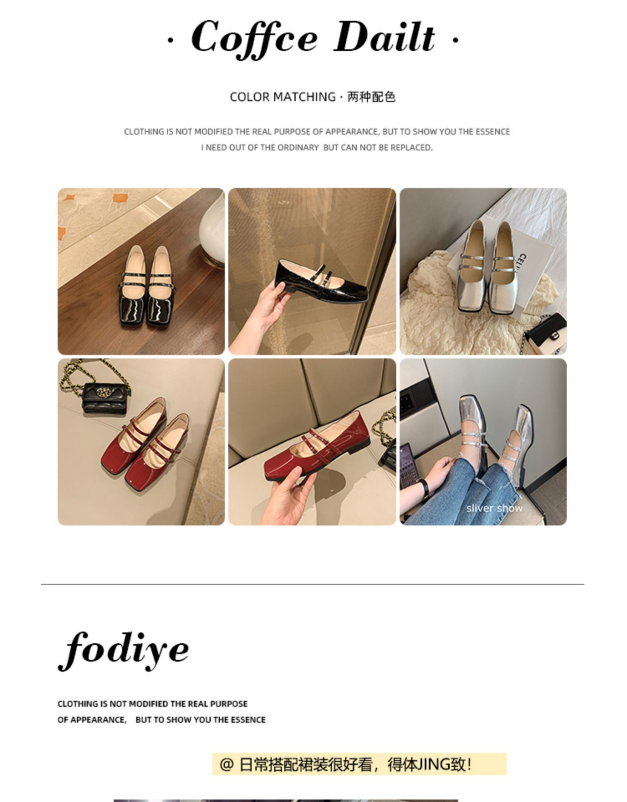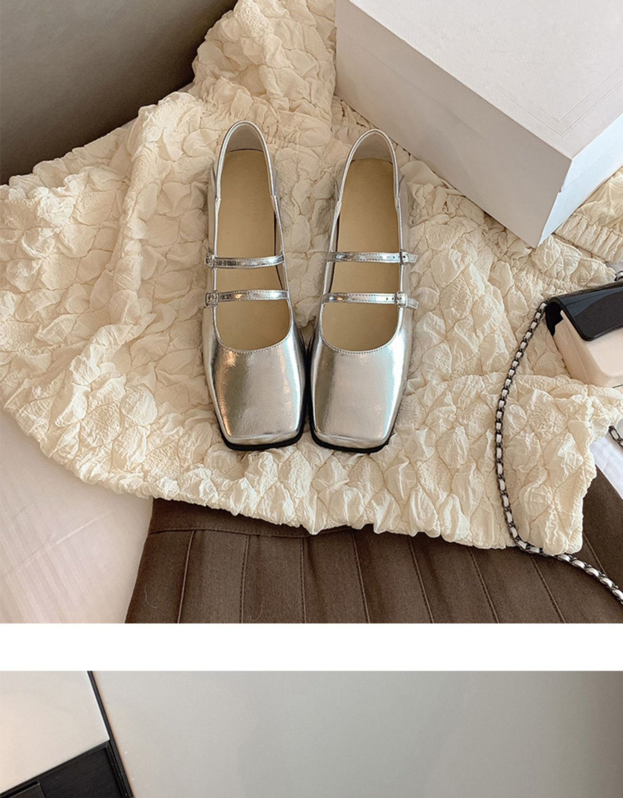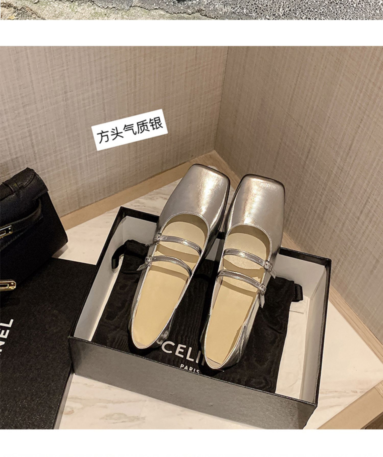 프랑스 저녁 브리즈 실버 신발 여성 플랫 2024 봄 새로운 우아한 요정 통근 광장 머리 얕은 입 메리 제인