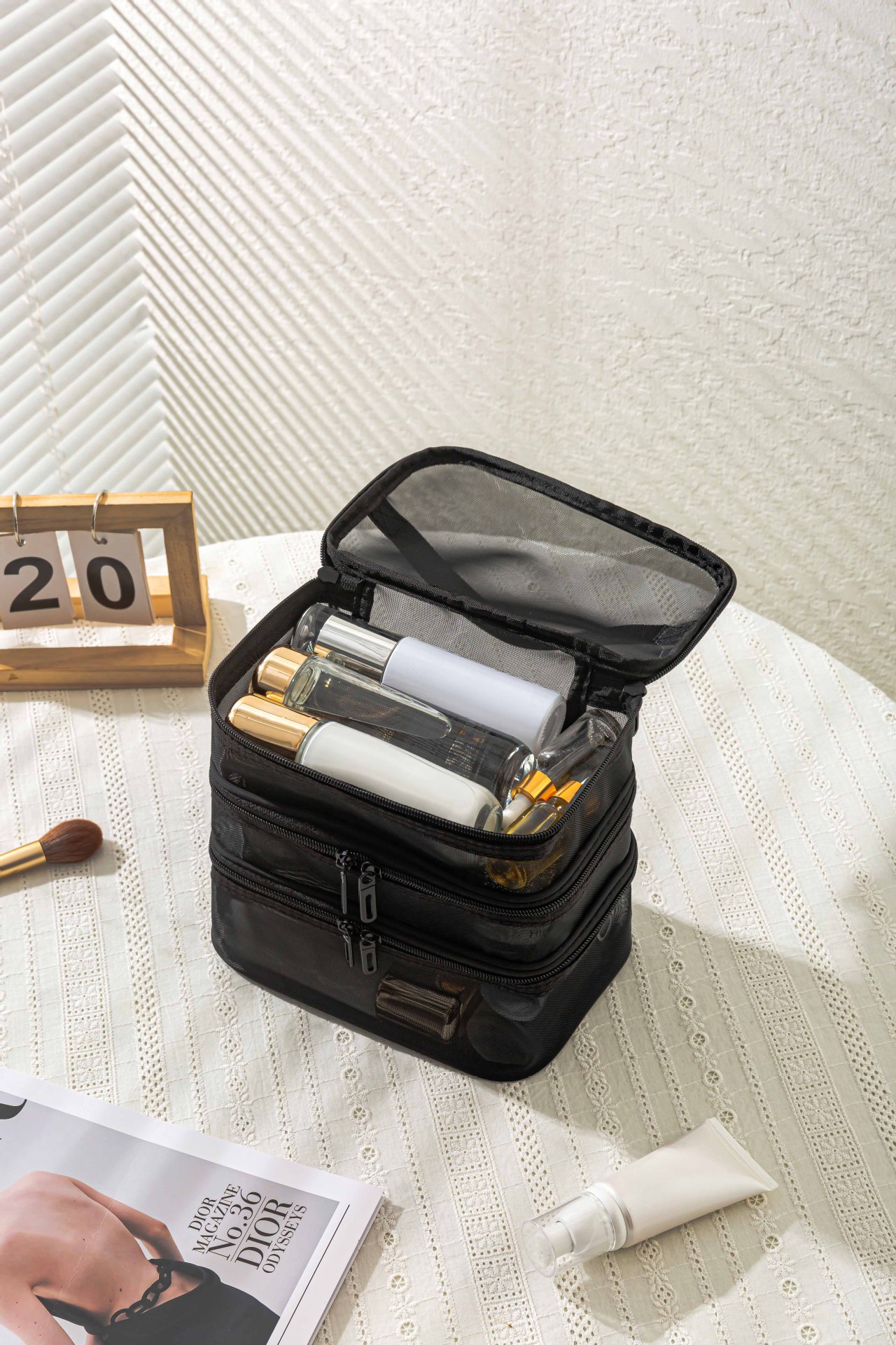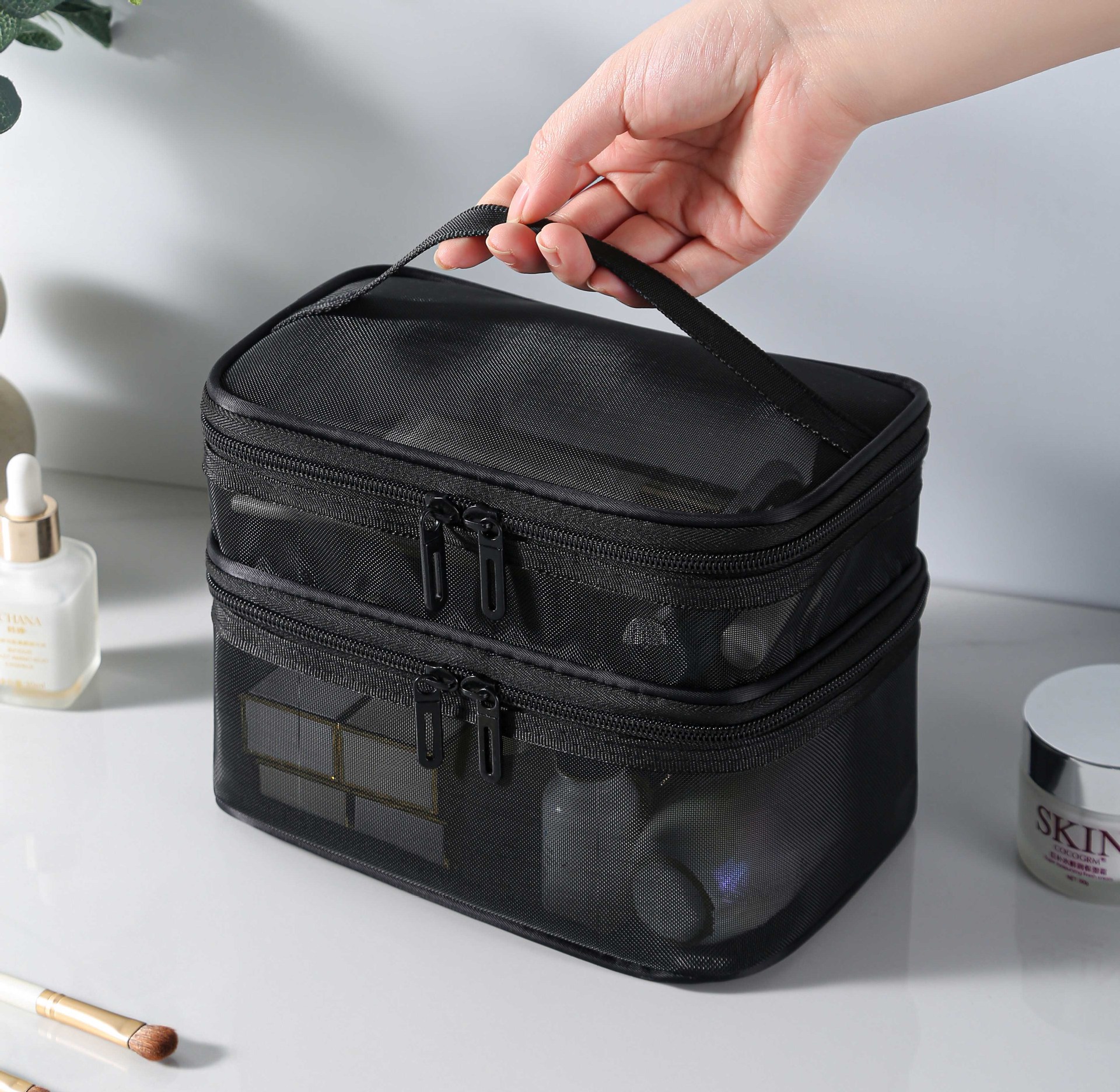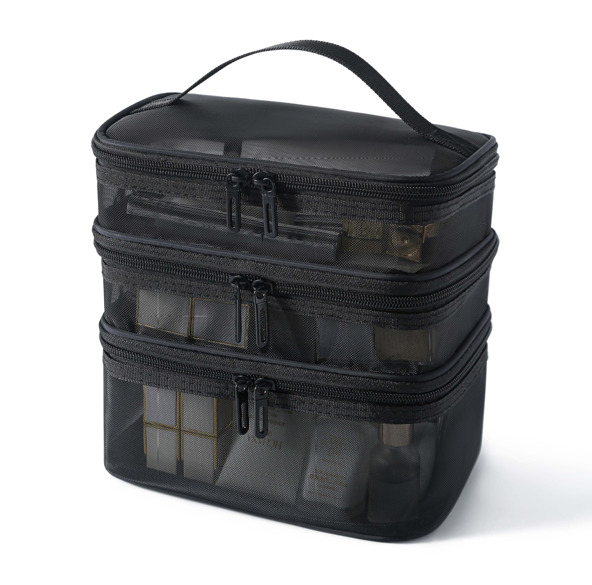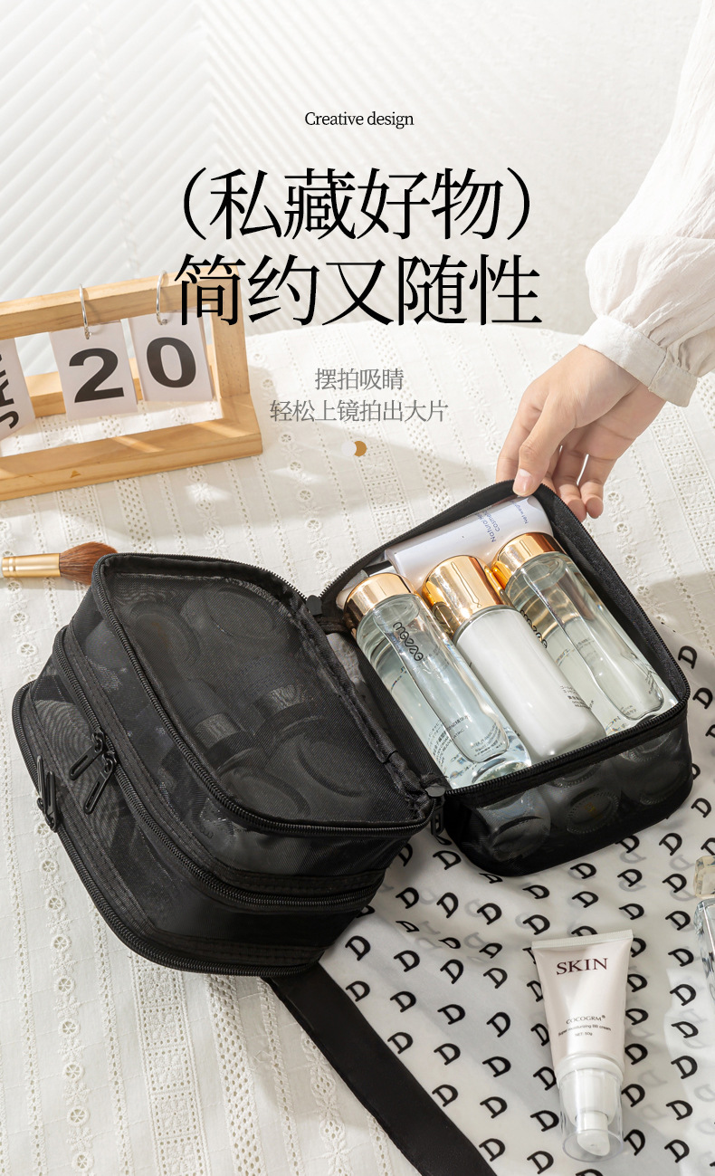메쉬 메이크업 가방 대용량 3 층 화장실 가방 더블 레이어 저장 가방 여행 메쉬 가방 도구 저장 상자 휴대용