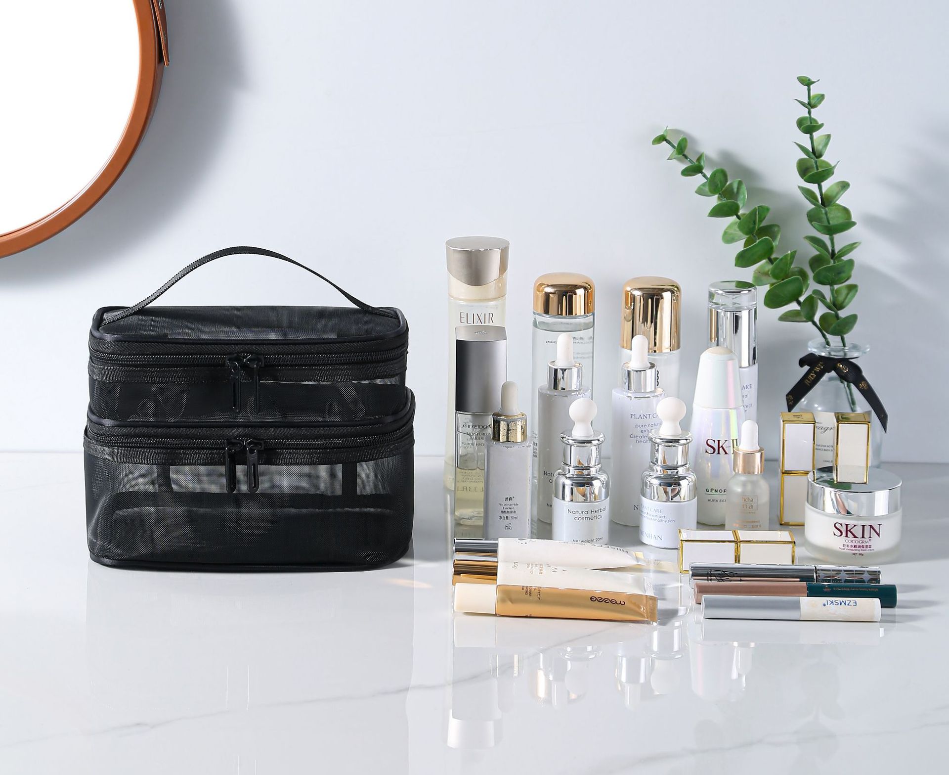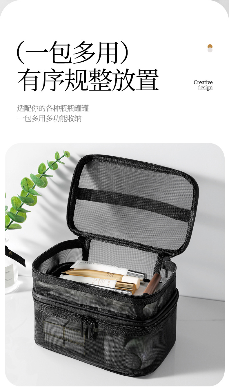 메쉬 메이크업 가방 대용량 3 층 화장실 가방 더블 레이어 저장 가방 여행 메쉬 가방 도구 저장 상자 휴대용스토어 가기
