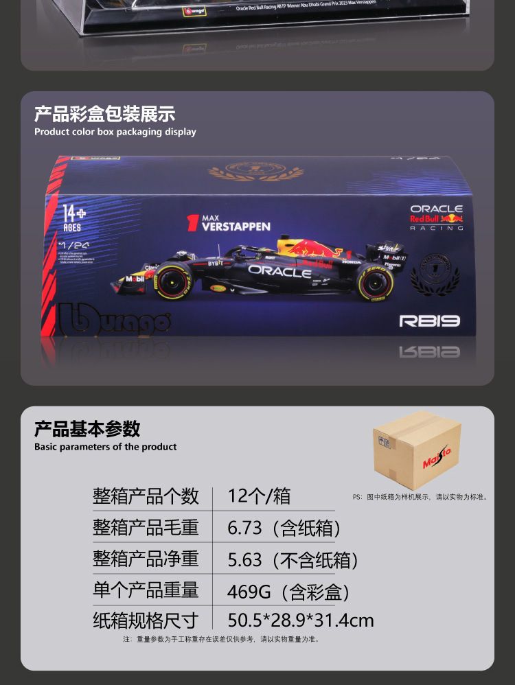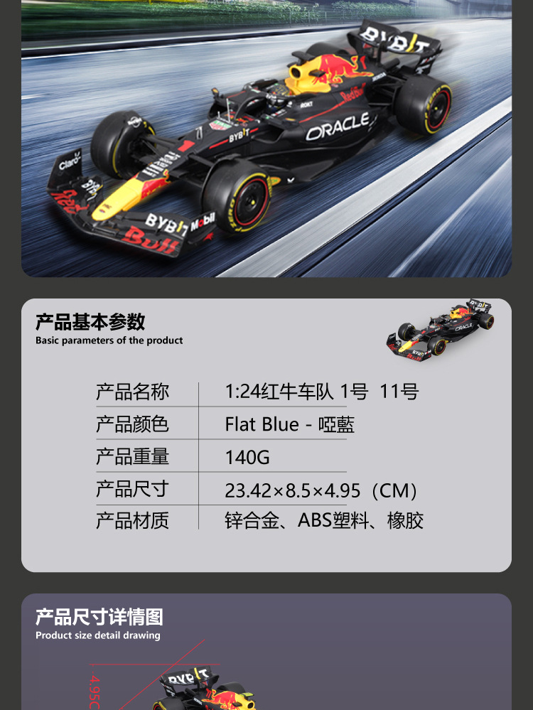 2023 비미고 1:24 레드불 RB19F1 시뮬레이션 합금 자동차 모델 포뮬러 메탈 장난감 남성용