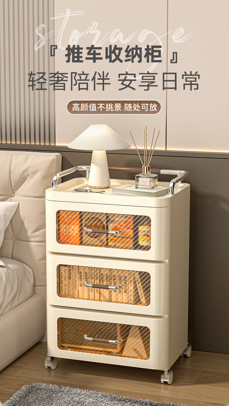 트롤리 스토리지 랙 이동식 스낵 화장품 보관 캐비닛 다기능 회전 미용 자동차 침대 캐비닛 침실
