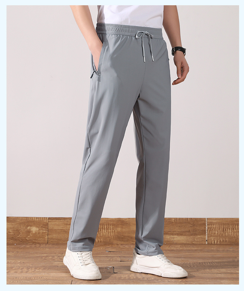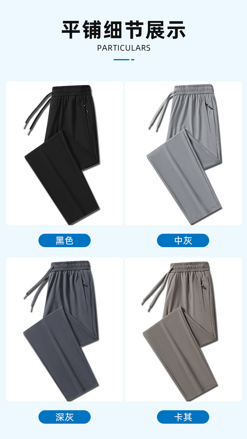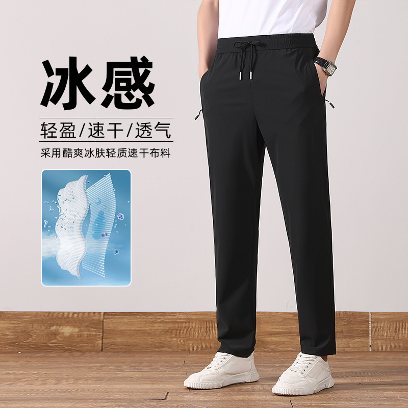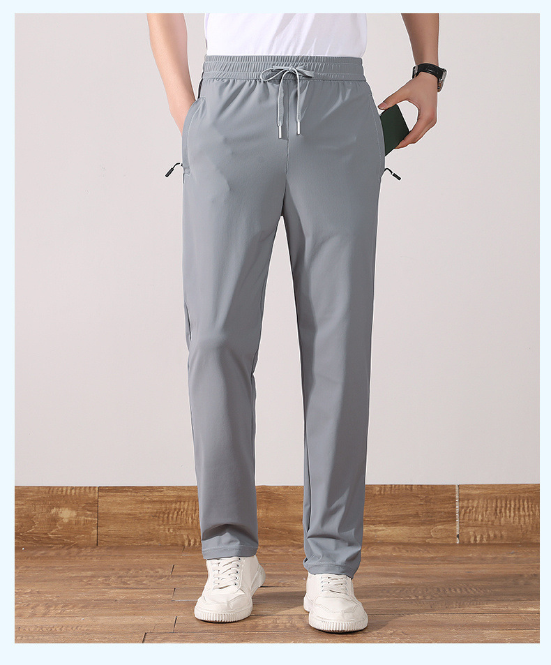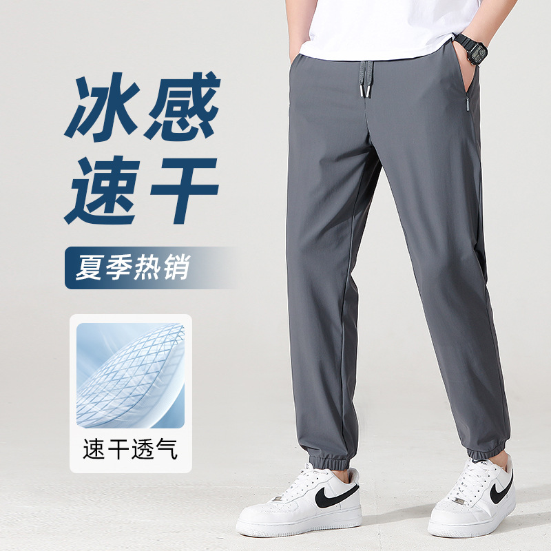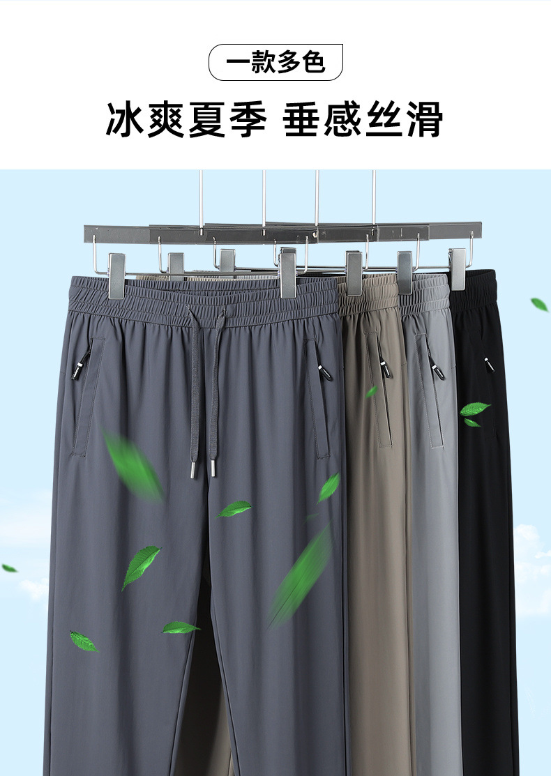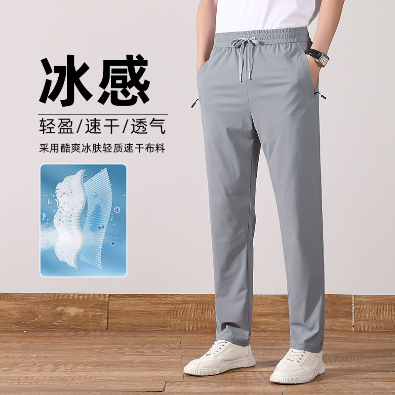 여름 아이스 실크 빠른 건조 바지 남자의 얇은 통기성 바지 청소년 대형 탄성 달리기 야외 스포츠 에어컨 바지스토어 가기