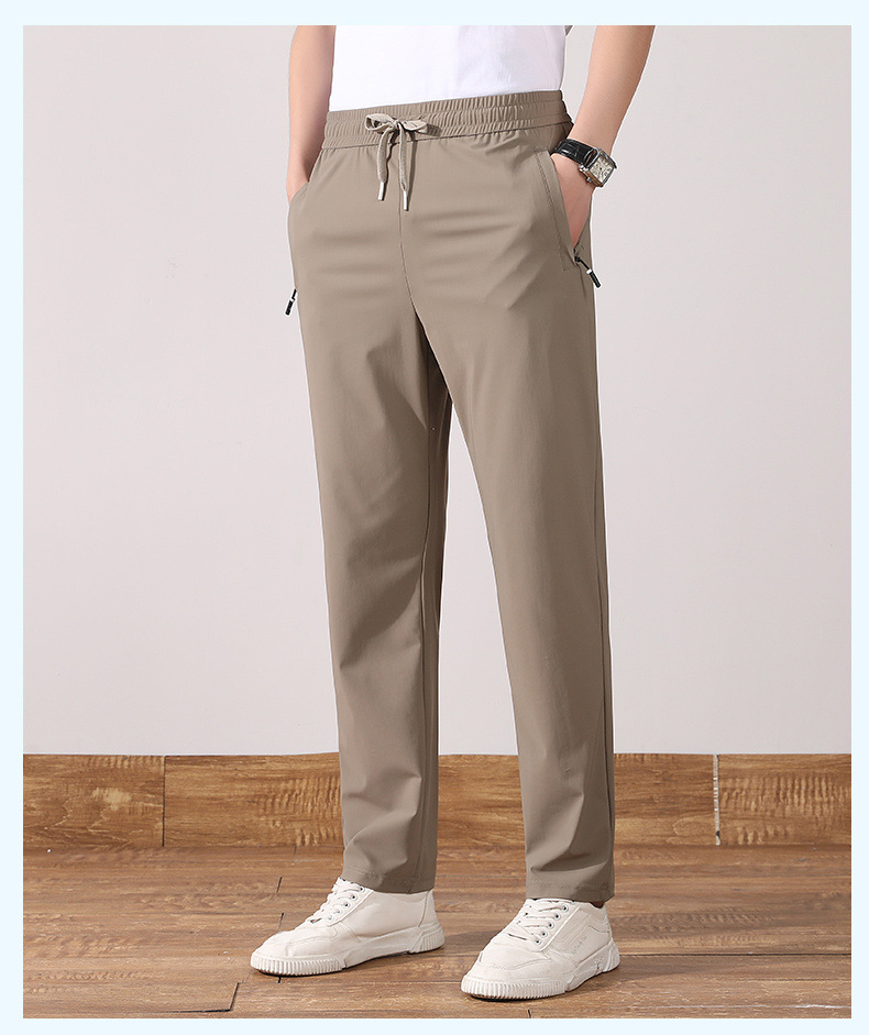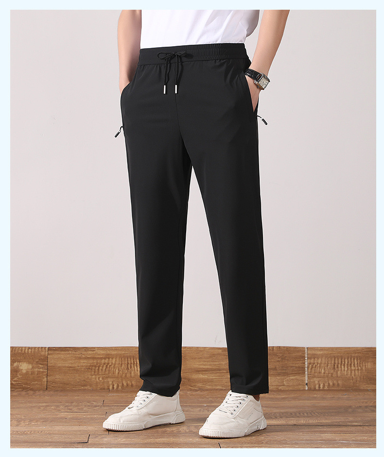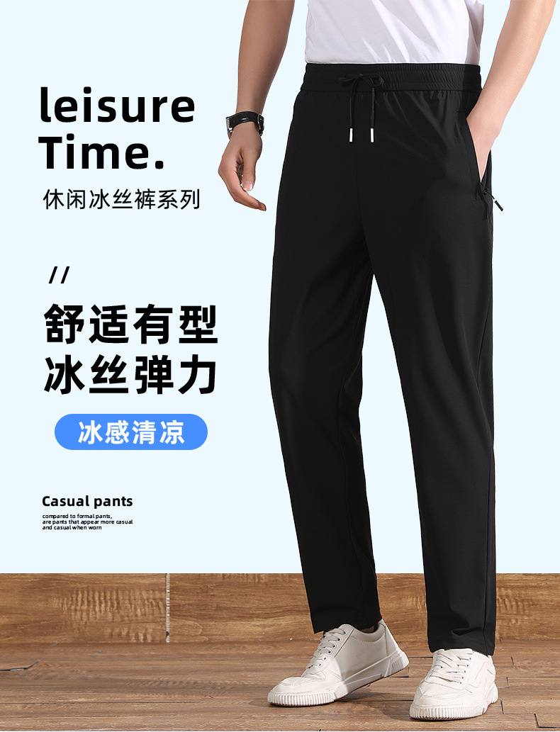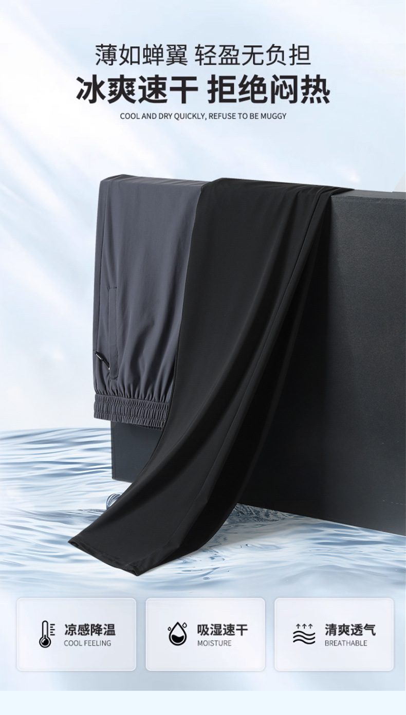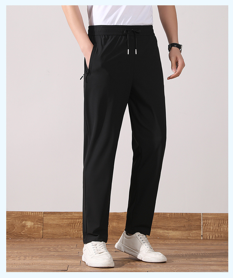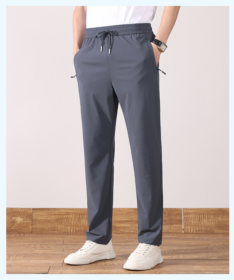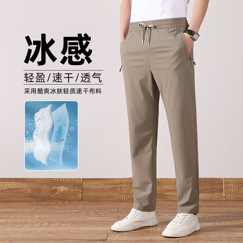 여름 아이스 실크 빠른 건조 바지 남자의 얇은 통기성 바지 청소년 대형 탄성 달리기 야외 스포츠 에어컨 바지스토어 가기
