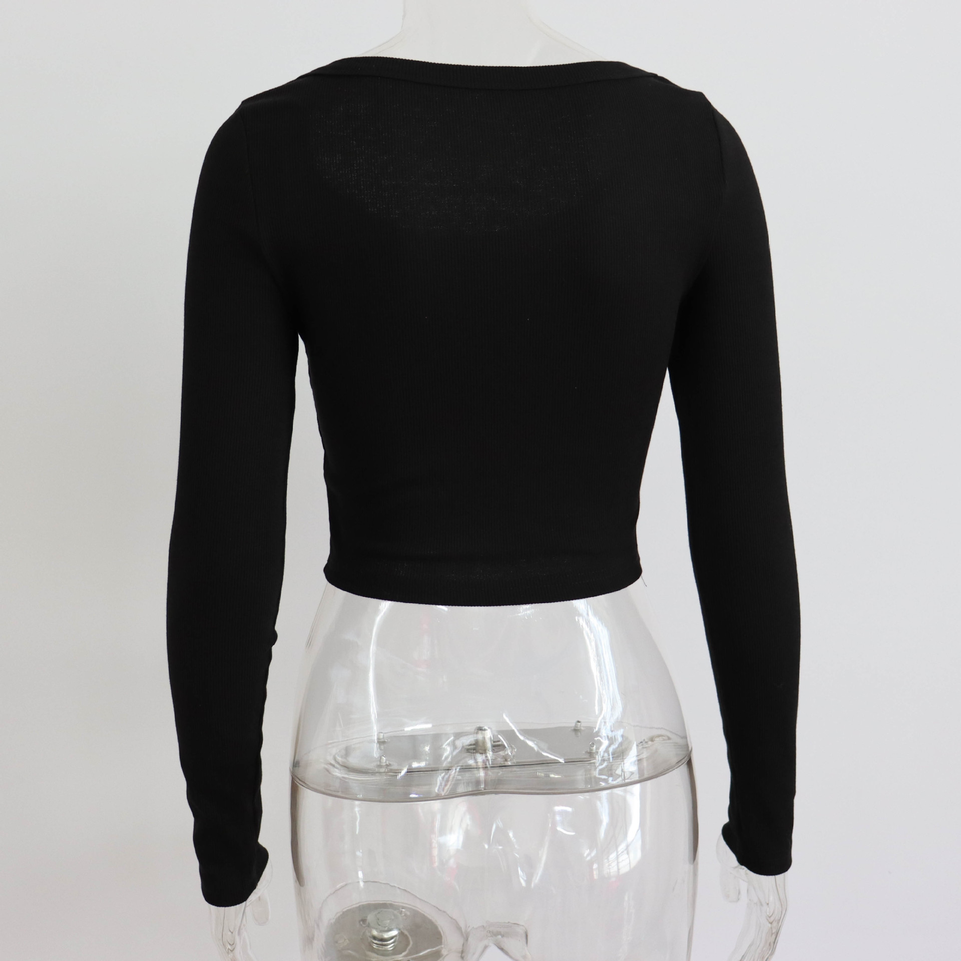 여성용 라지 라운드 넥 긴팔 골지 숏탑, 캐주얼하고 섹시한 가을 겨울 니트 밑단 셔츠, 유럽 및 미국 스트리트 슬림핏 티셔츠