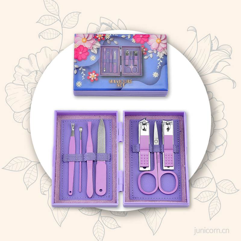 厂家现货印花塑料盒7件套指甲刀指甲钳美甲修甲工具指甲修护套装